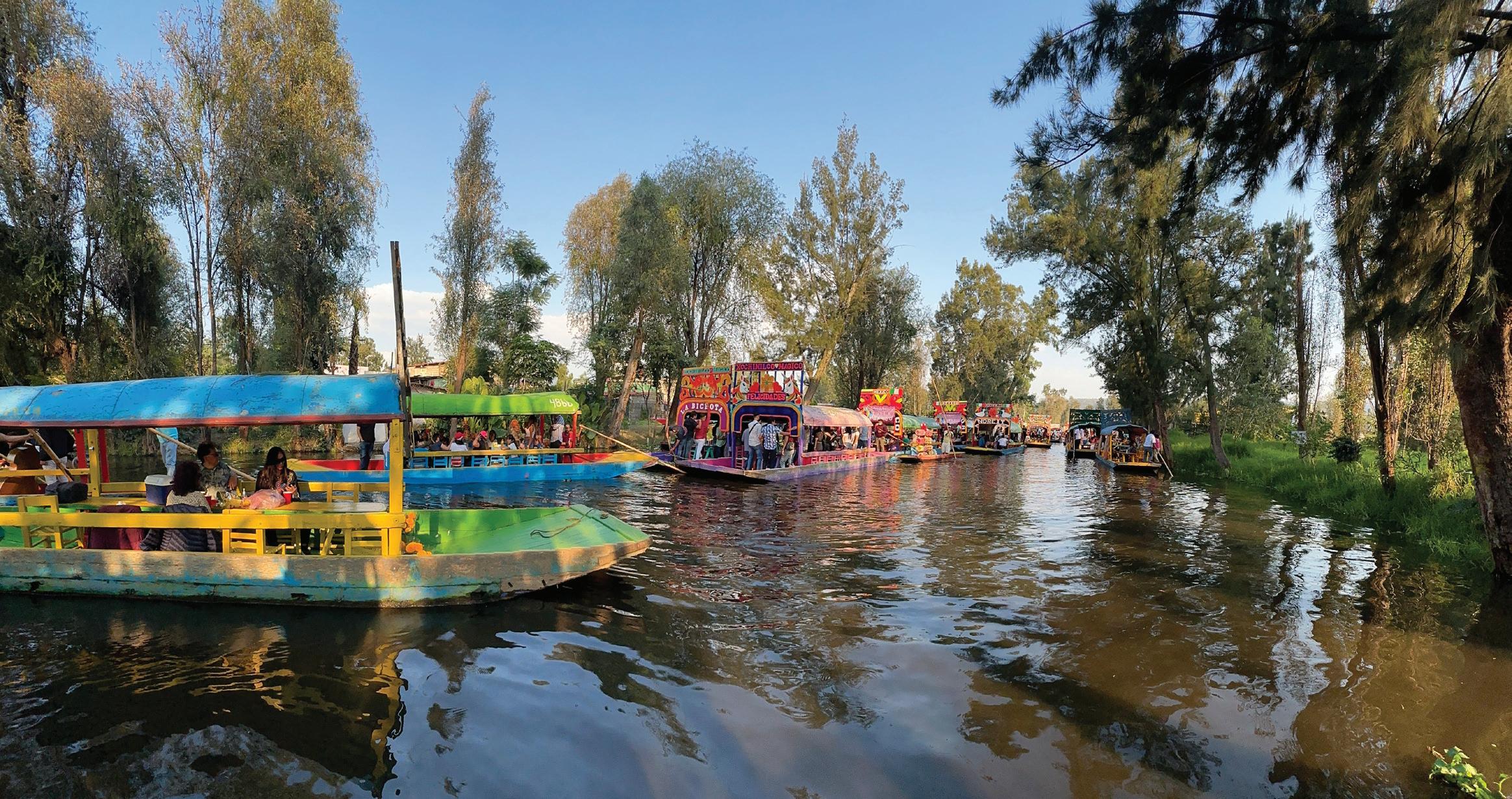 ABOVE RIGHT The name Xochimilco refers to “the place where flowers grow” but that is only part of the story. The land was literally created above a huge lake by the Aztecs using terraforming techniques that are still in use today. The agriculture of the park is often used in the fine restaurants of the city because of the unique quality of the soil. These farming areas needed boats to get around and the tradition of riding in a boat to celebrate family events and holidays on the boats began soon after.