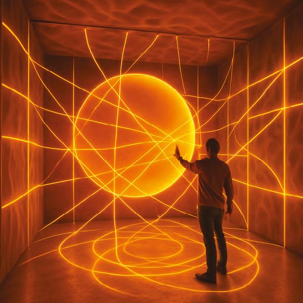 In the year 2050, humanity discovers its 'inner resonator', which is capable of awakening light through consciousness. The night comes alive, breathing to the rhythm of the crowds. Emotions then reveal themselves in colourful auras: golden joy, blue sadness, red anger and green peace. Masks fall away, cities transform into luminous symphonies and light becomes an extension of consciousness.