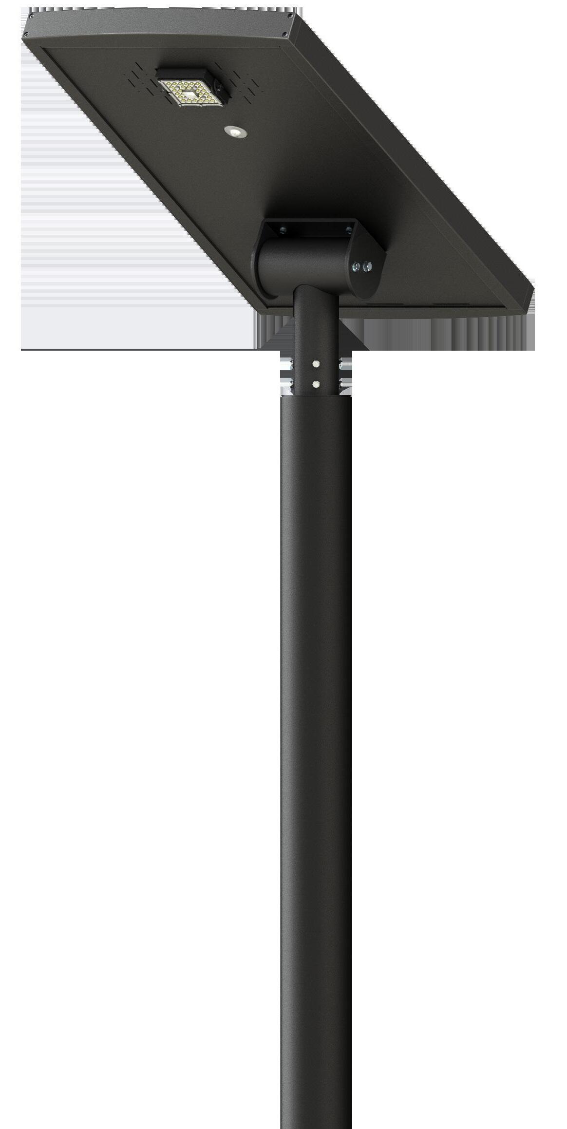 Incorpora lo último en tecnología LED y paneles fotovoltaicos, reinventando el poste de iluminación para el siglo XXI. Cuenta con un diseño moderno y elegante, sensores integrados de movimiento y luz solar, carga solar y atenuación programable. Los postes solares integrados son la solución ideal para una iluminación sostenible en áreas peatonales.