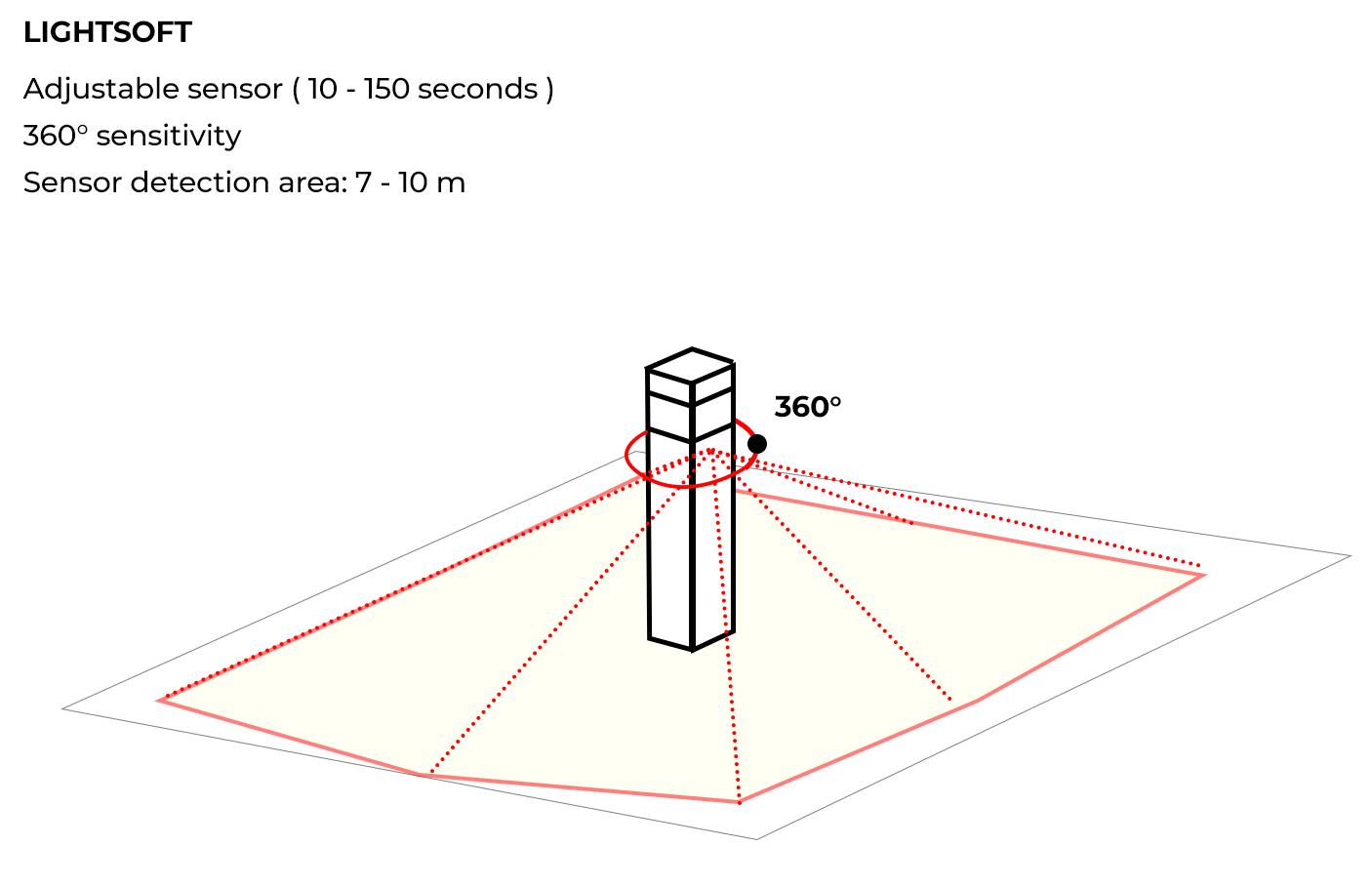 - Durée de fonctionnement maximale de 35 heures (gradation en 2 étapes avec remplacement du capteur de mouvement)
