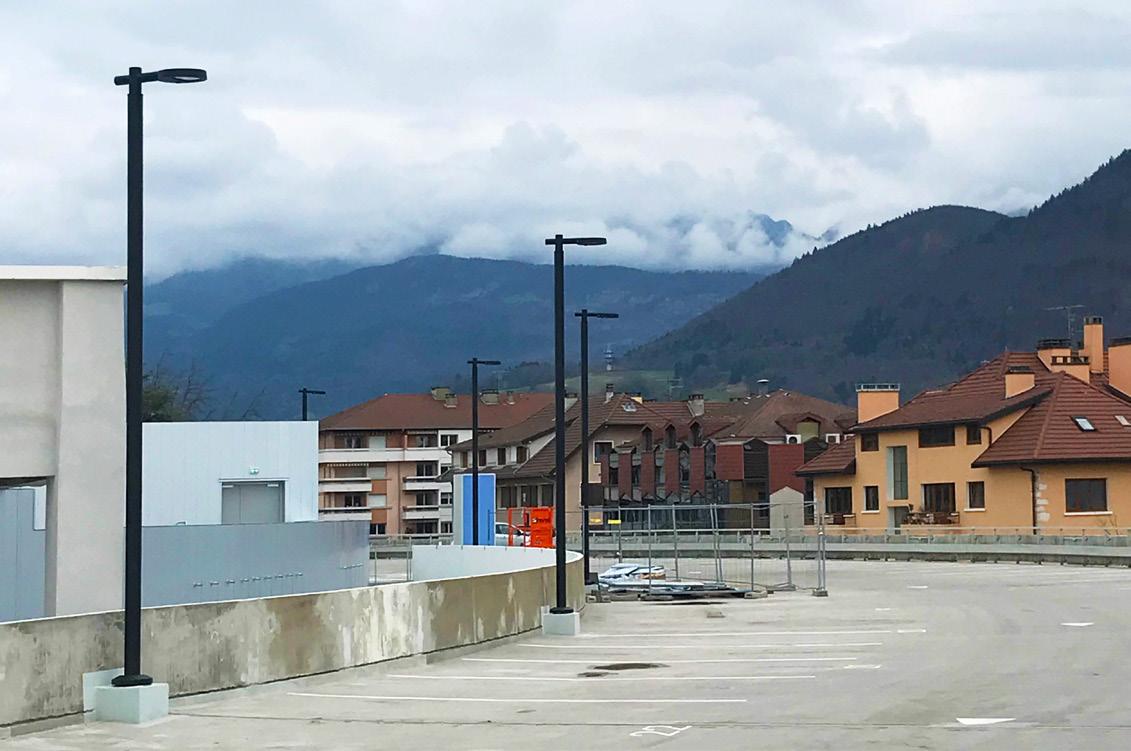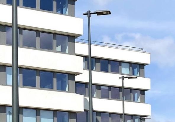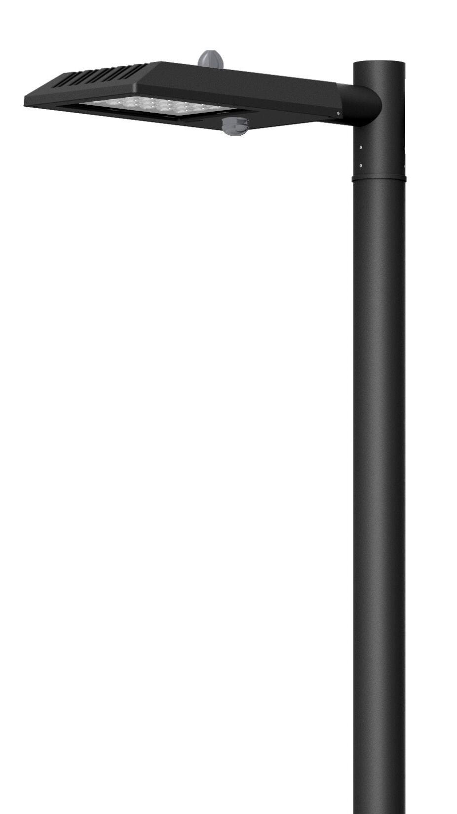 Column-mounted contemporary area lighting family. Modern and powerful high-end column range using optimum-quality area floodlights.