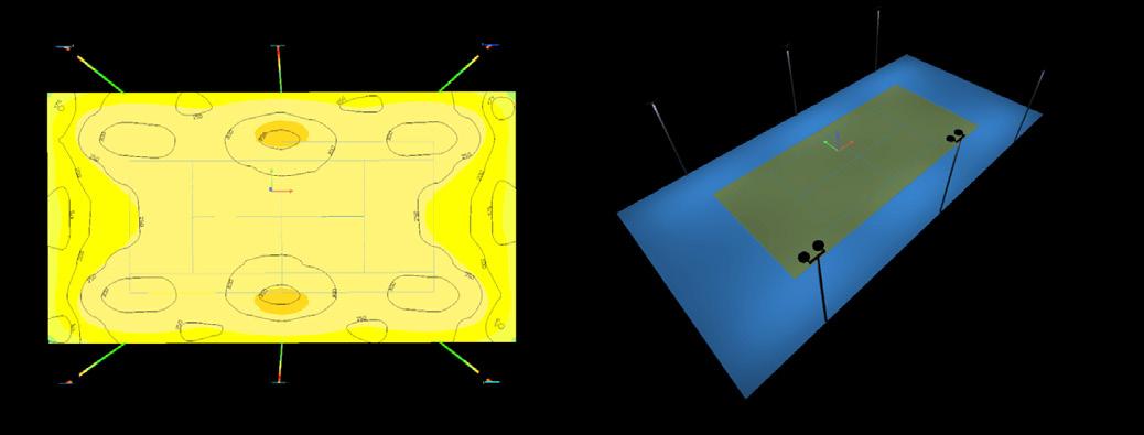 Low-level competition, such as local or small club tournaments. This does not usually involve spectators. General training, school sportsand recreational activities also fall into this class. Horizontal illuminance Uniformity of illuminance Glare Lamp colour temperature Lamp colour rendering Eh average (lux) Emix / Eh ave GR (K) R a Class l > 500* > 0.7 < 50 > 4000 > 80 Class ll > 300* > 0.7 < 50 > 4000 > 65 Class lll > 200* > 0.6 < 55 > 2000 > 20 16.5 m