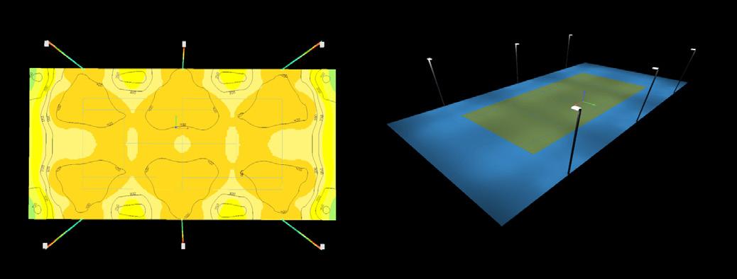Whilst traditional (metal halide) lighting installations would require costly additional hardware in order to accommodate staged lighting between the different classes, LED flood lights are better equipped for this scenario allowing for more flexibility (professional, amateur, recreational level of play) and energy savings.