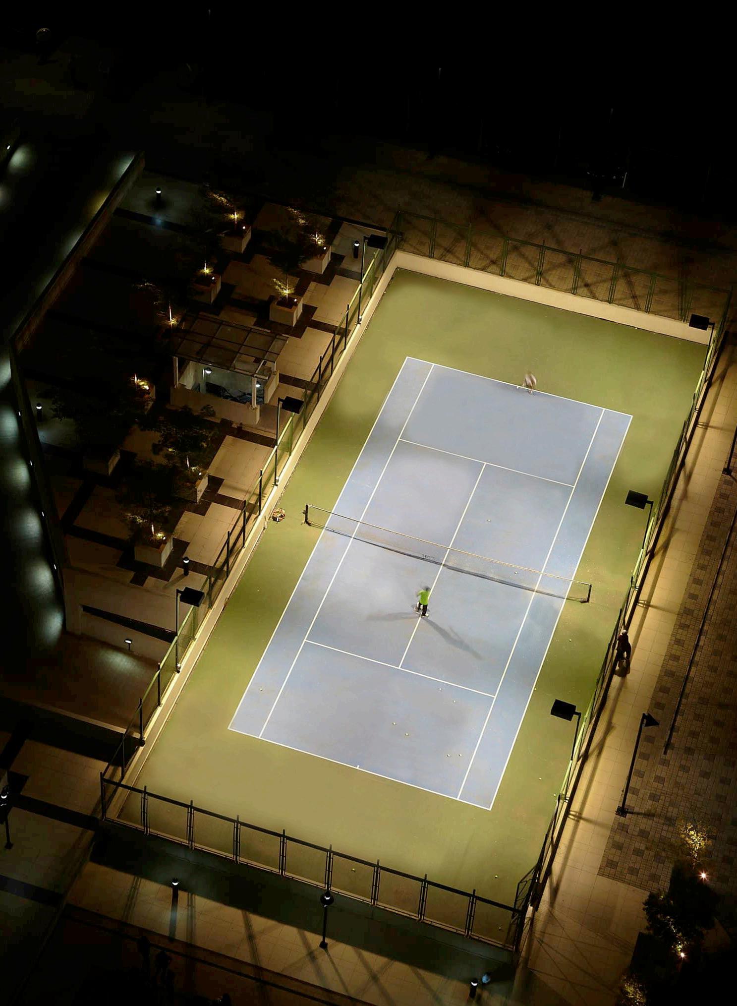 Tennis is a fast paced sport which demands high levels of visual acuity. Good contrast between the ball and the vertical surrounds are important, however the drop off in illumination levels beyond the boundary lines should not to be too stark as players are also active in those areas.