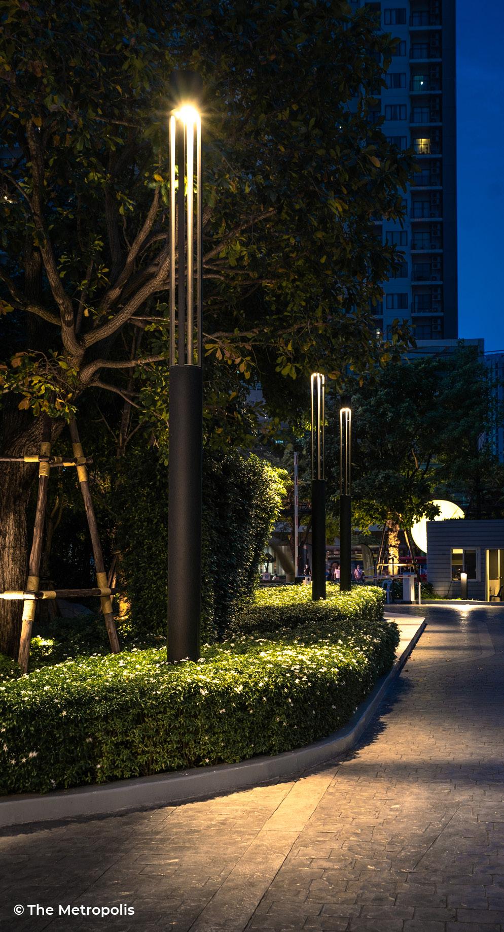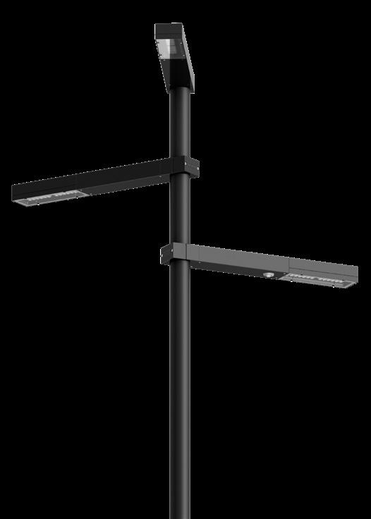 Familia de columnas contemporáneas de dominio público. Soluciones de iluminación de área con estilo pero técnicamente precisas como parte de una gran familia flexible.