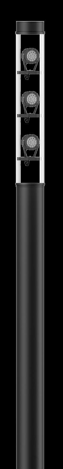 Column-mounted contemporary area lighting family. Modern and powerful high-end column range using optimum-quality area floodlights.