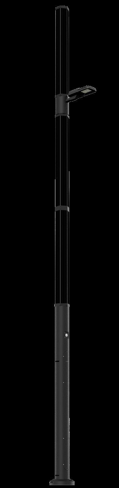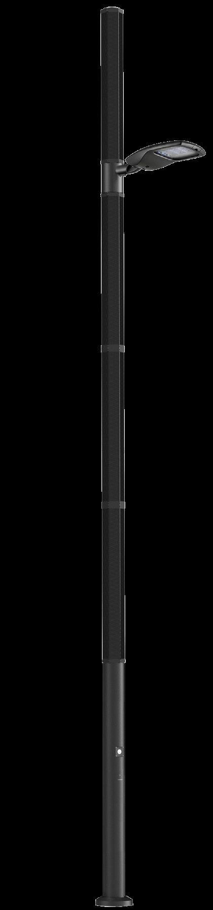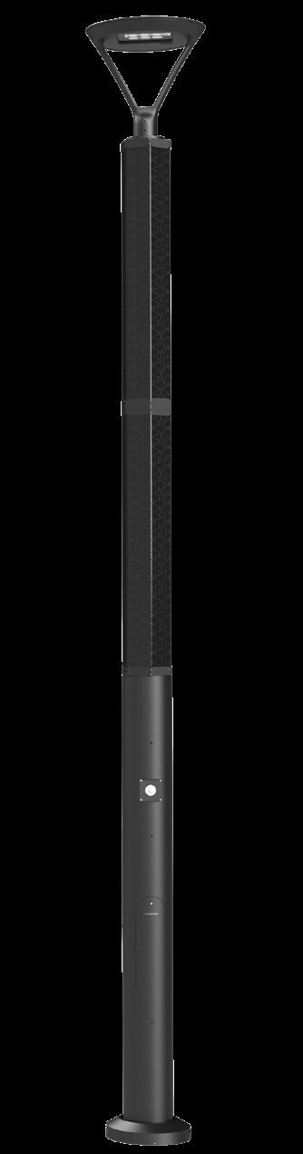 Incorpora lo último en tecnología LED y paneles fotovoltaicos, reinventando el poste de iluminación para el siglo XXI. Cuenta con un diseño moderno y elegante, sensores integrados de movimiento y luz solar, carga solar y atenuación programable. Los postes solares integrados son la solución ideal para una iluminación sostenible en áreas peatonales.