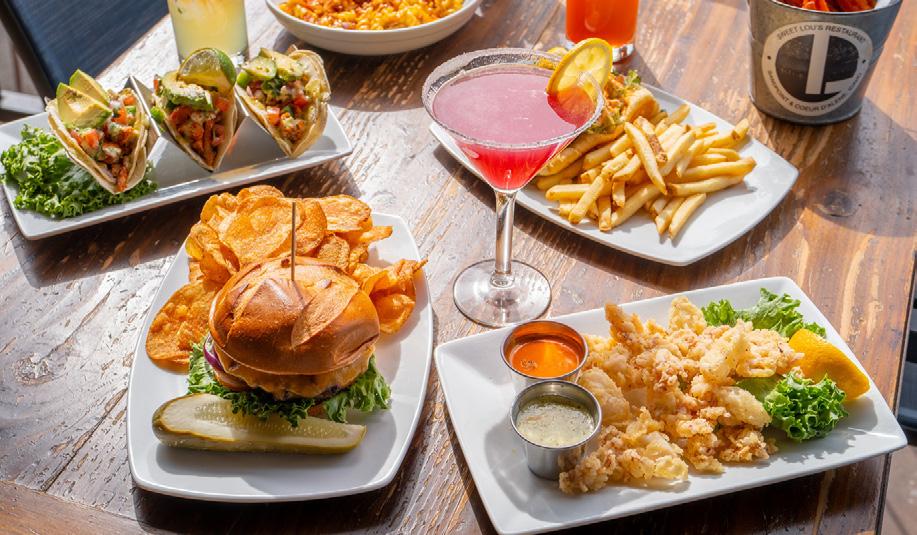 Enjoy home-style comfort food made with highquality ingredients at Sweet Lou’s. You’ll be treated to amazing burgers, beer-battered onion rings, hand-cut top sirloin and more, including the crowd favorite—Grilled PB&J with locally made huckleberry jam and bacon. There is also a full bar featuring more than a dozen draft beers. And don’t forget … 20 4K TVs are onsite for watching the game! Open daily for lunch, dinner and drinks from 11am to 10pm, with online ordering available. Check out Sweet Lou’s Coeur d’Alene and Athol locations as well.