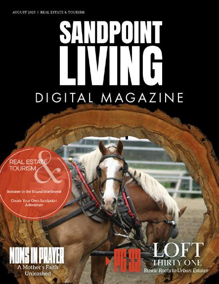 The August 2025 edition of Sandpoint Living Digital Magazine explores the intersection of real estate and tourism across the Inland Northwest. Our cover highlights the season’s local charm with an image that reflects the region’s heritage and connection to the land. Inside, discover stories that connect place to purpose, including a feature on LOFT THIRTY ONE’s evolution from rustic roots to elevated estates, and a heartfelt look at faith and family in Moms in Prayer: A Mother’s Faith Unleashed.