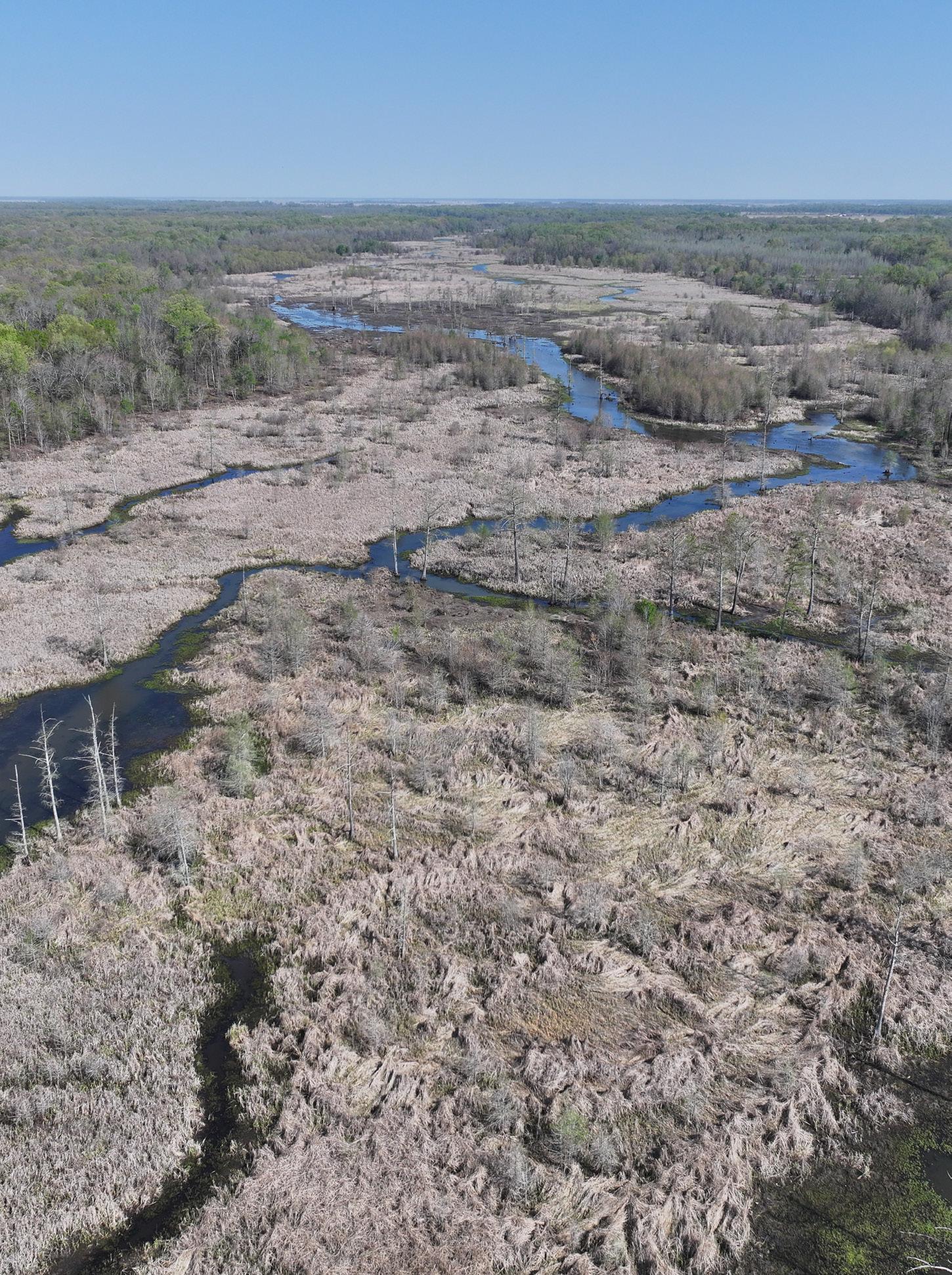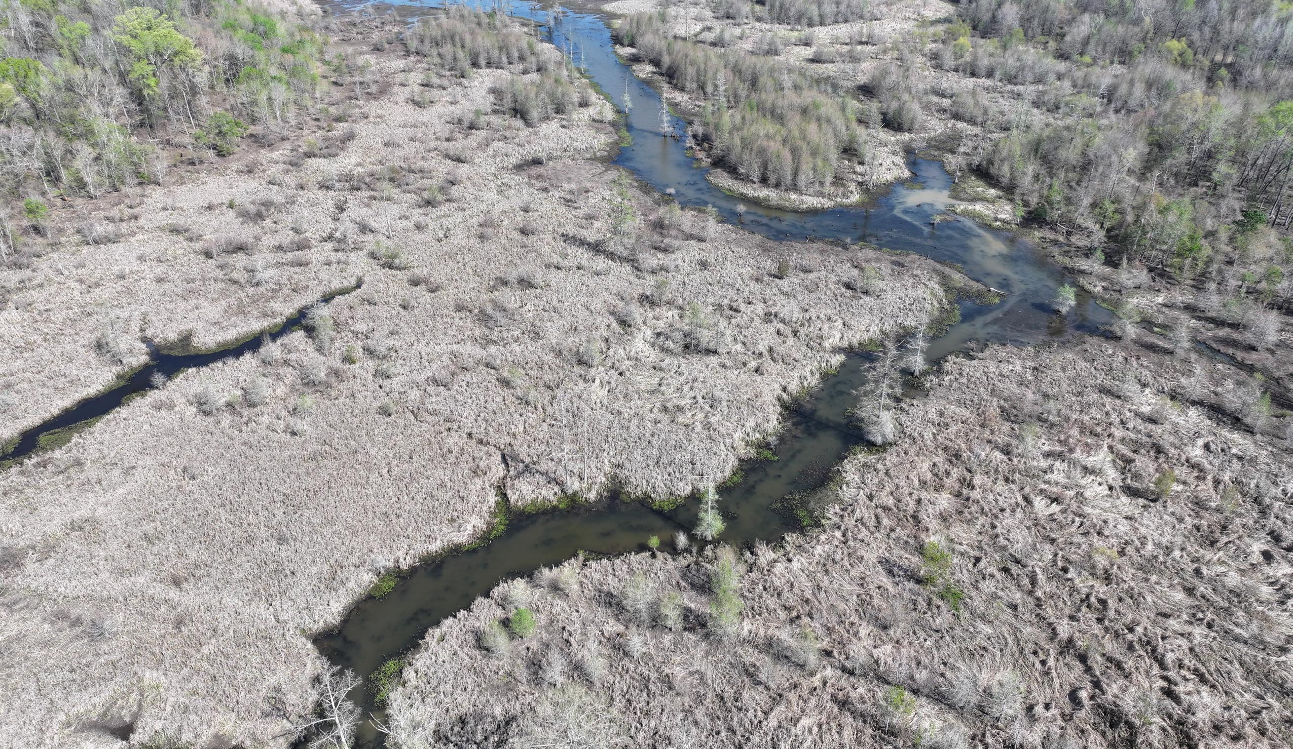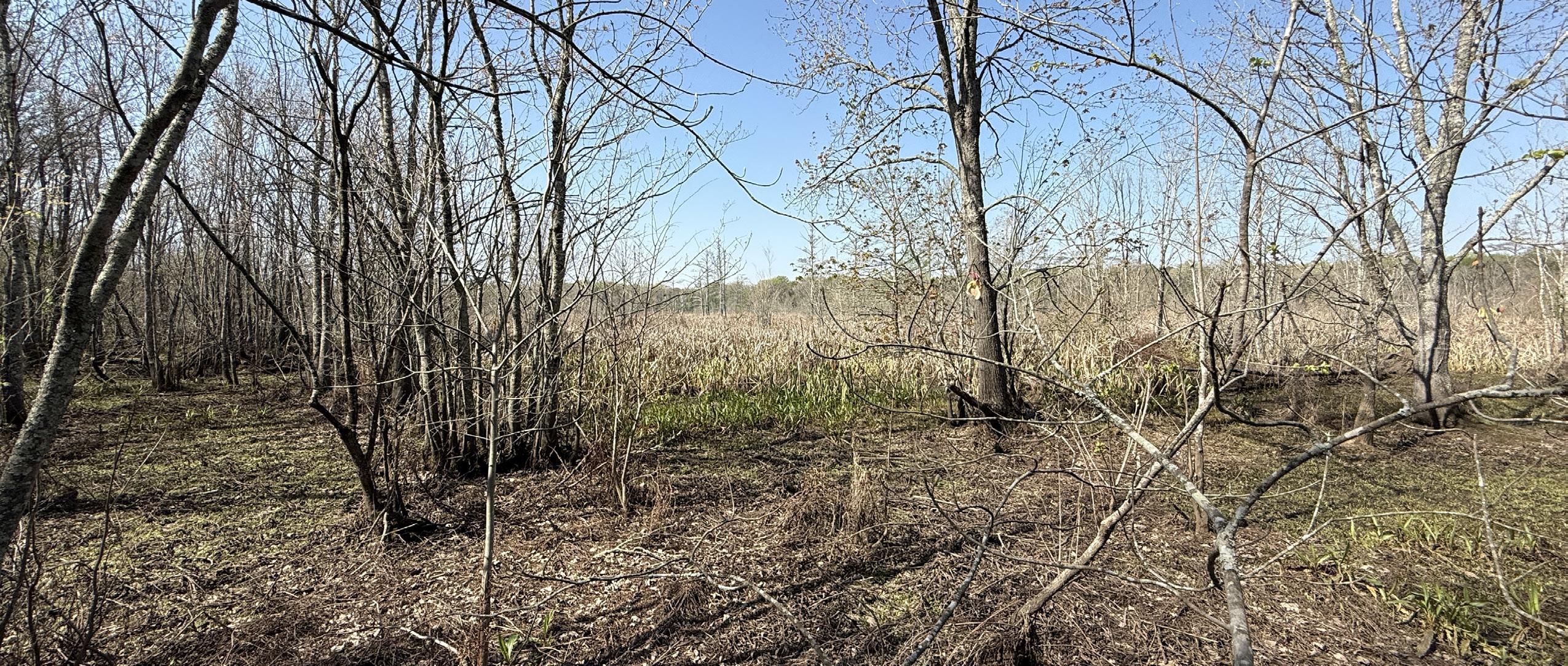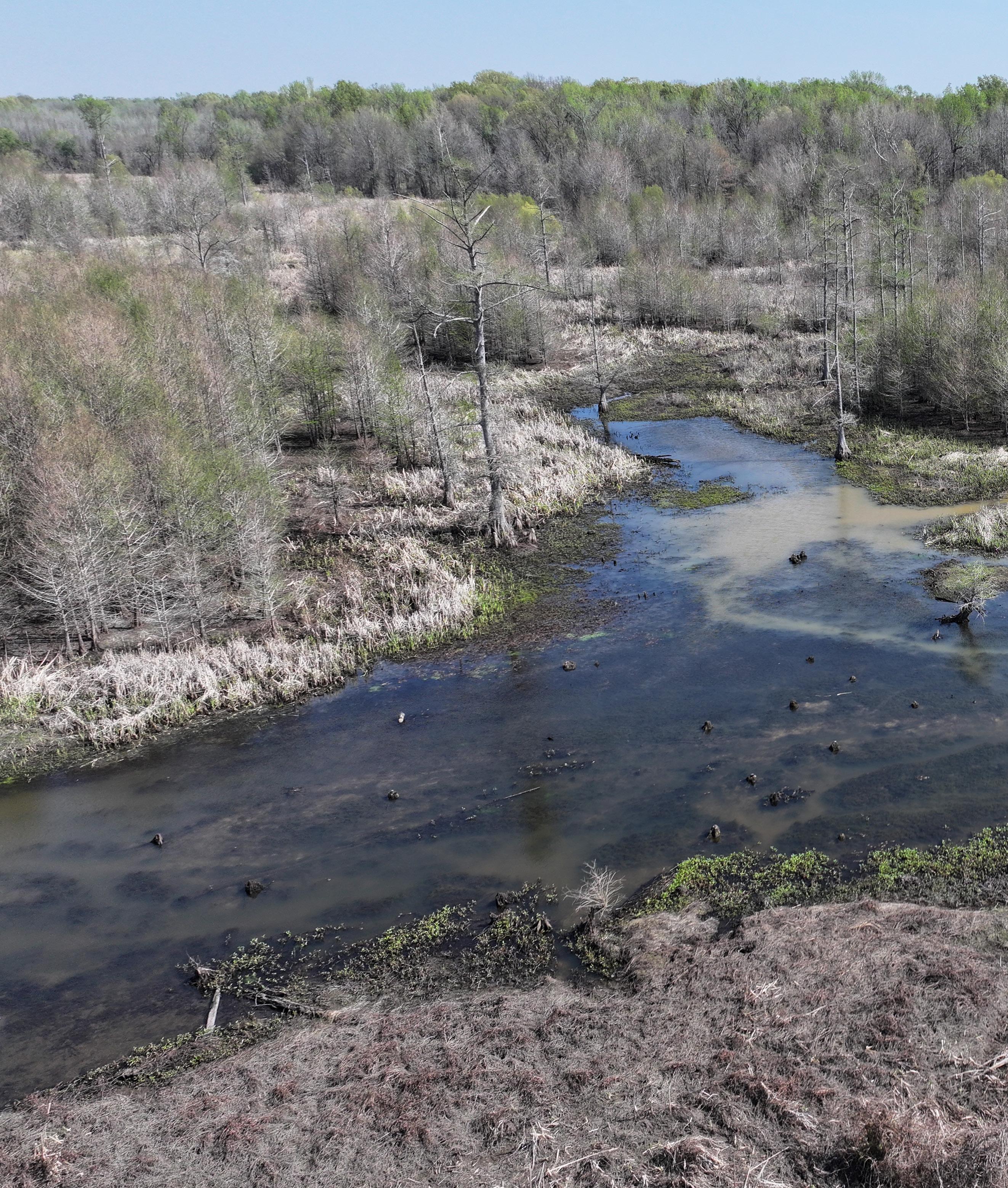 The south tract is well-appointed with an existing boathouse and a partially graveled parking lot, offering convenient access for boats and equipment during the season. From the boat shed, boat trails cut by a floating trackhoe lead directly to three established hunting holes, each equipped with blinds and ready for opening day. A boat trail extends northward through Big Creek, connecting the southern tract to additional established shooting holes on the 40-acre northern parcel.