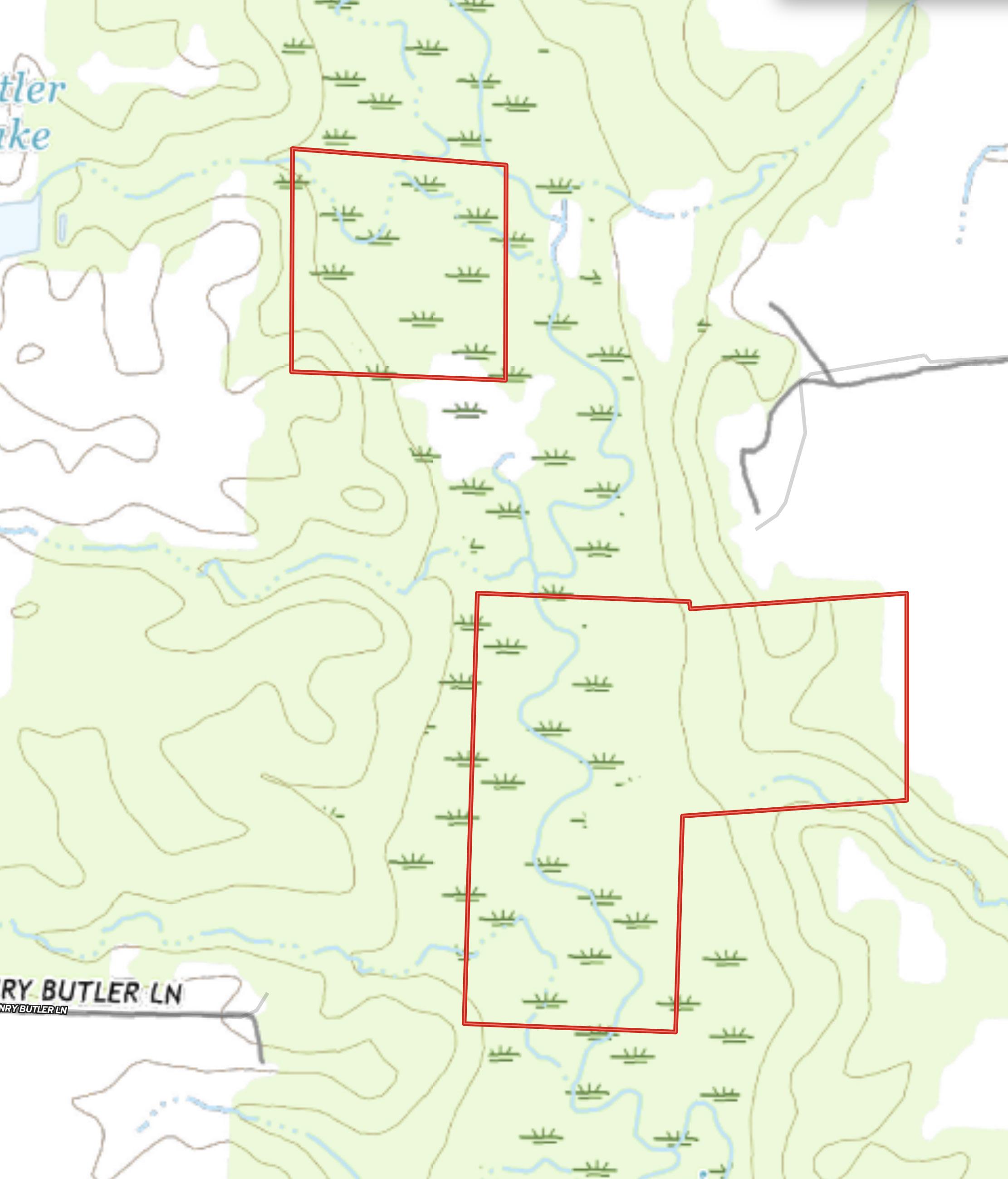 A spacious clearing at the northeast corner of the south tract offers a premium opportunity to develop an off-grid camp or permanent hunting cabin.
