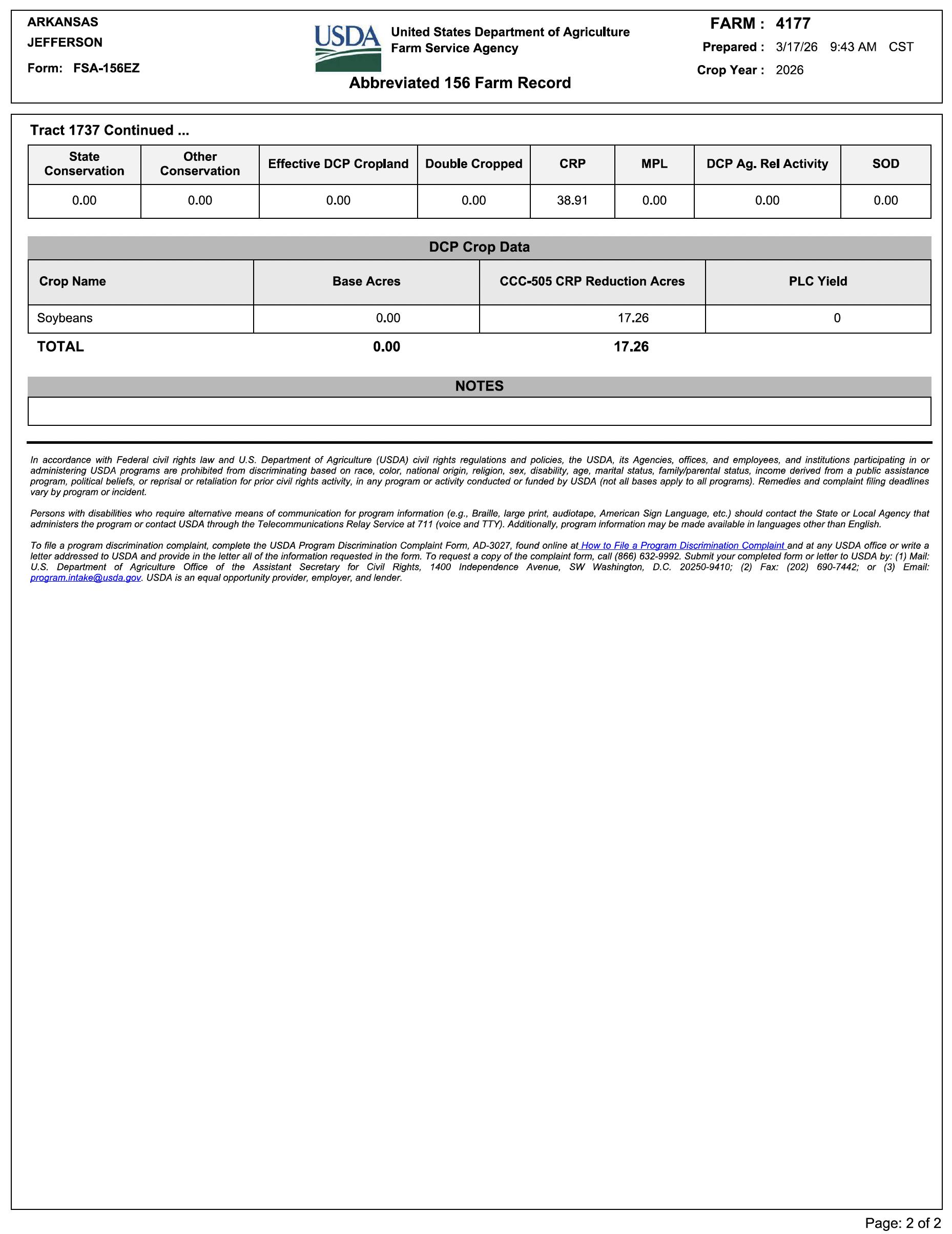 The annual payment is $2,967.00 for the 38.91 acres enrolled in the program. The contract expires September 30, 2033.