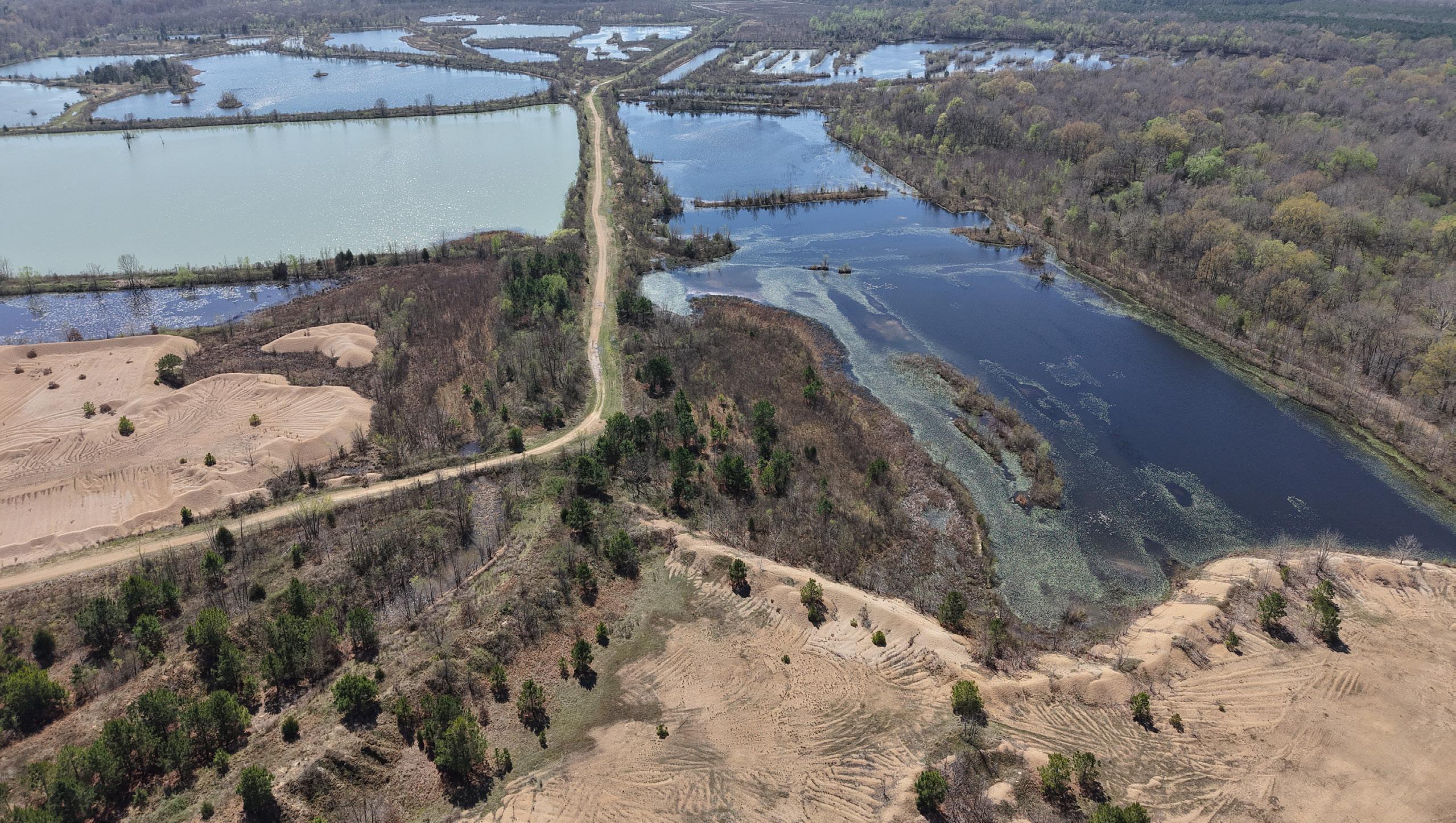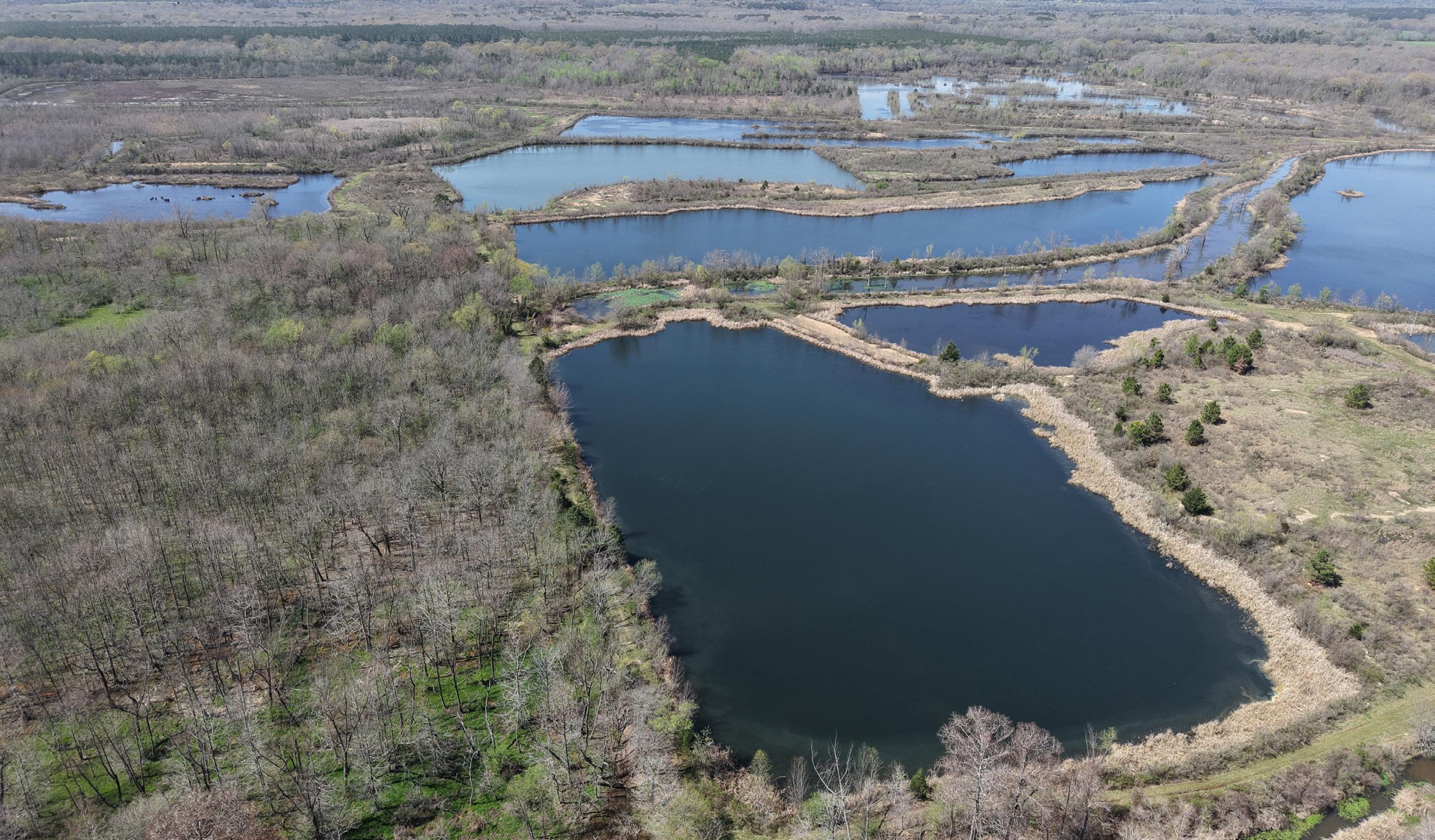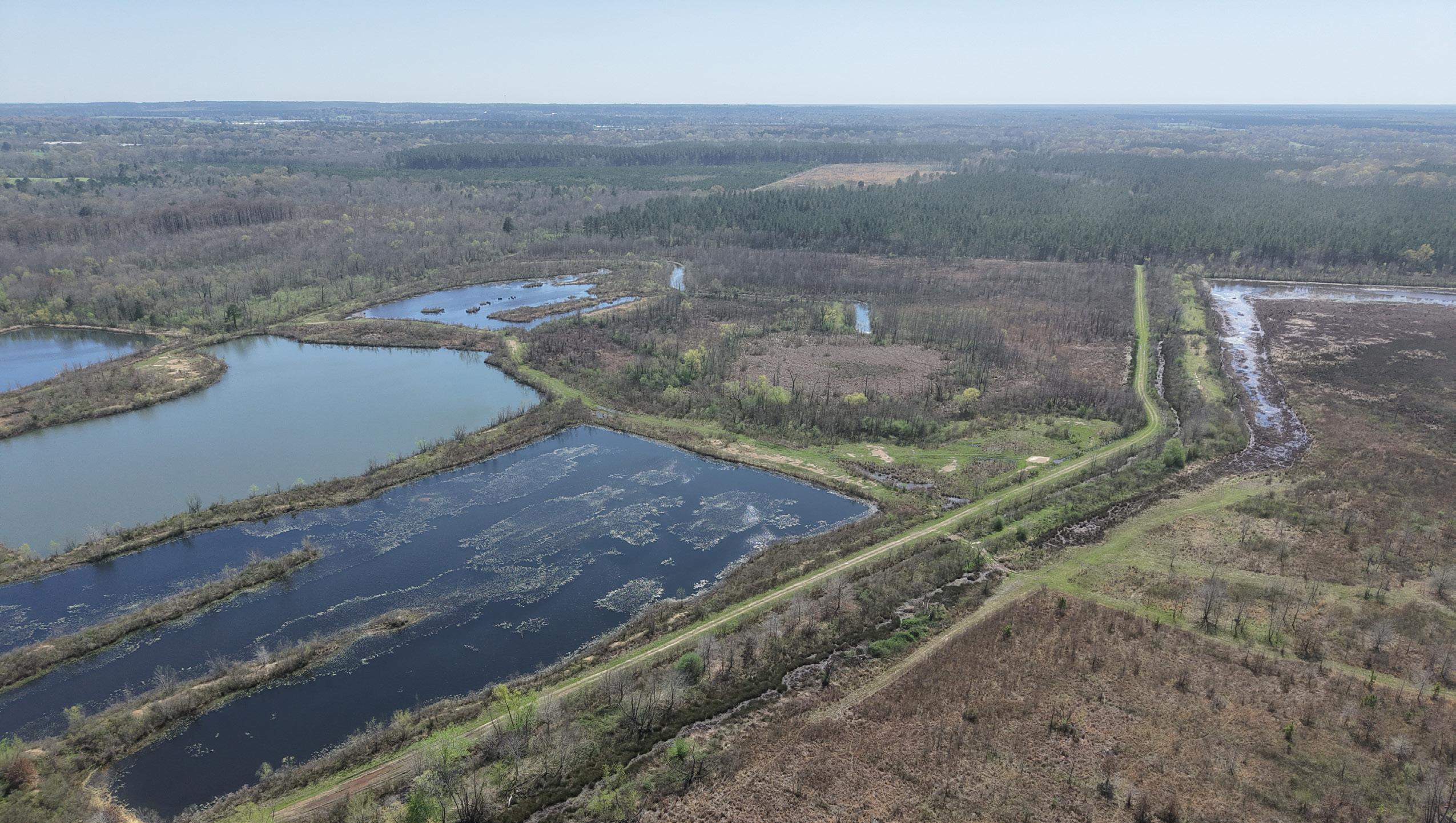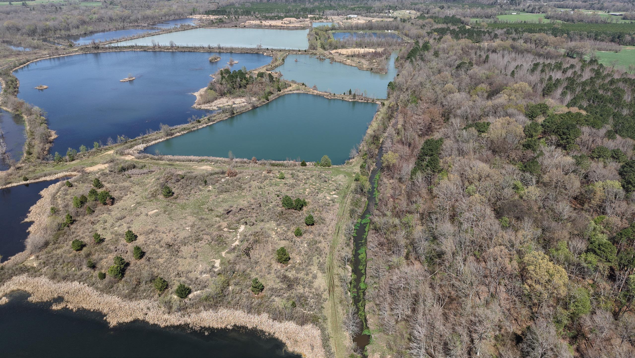 An interior road and levee system connects the ponds and provides excellent internal access. These ponds could easily be merged to create several larger bodies of water, and their varying depths and topography offer strong potential to further enhance fishing throughout the property.
