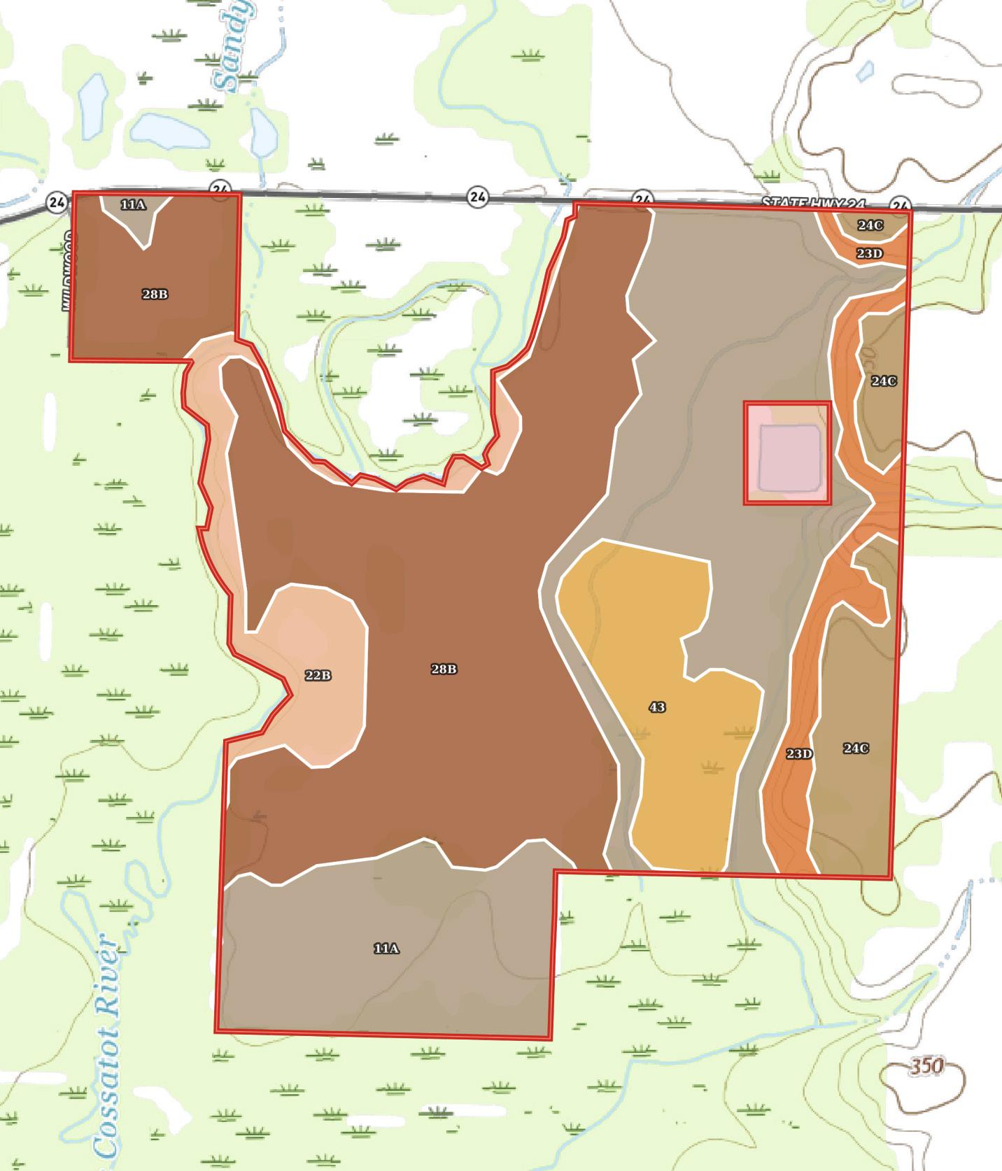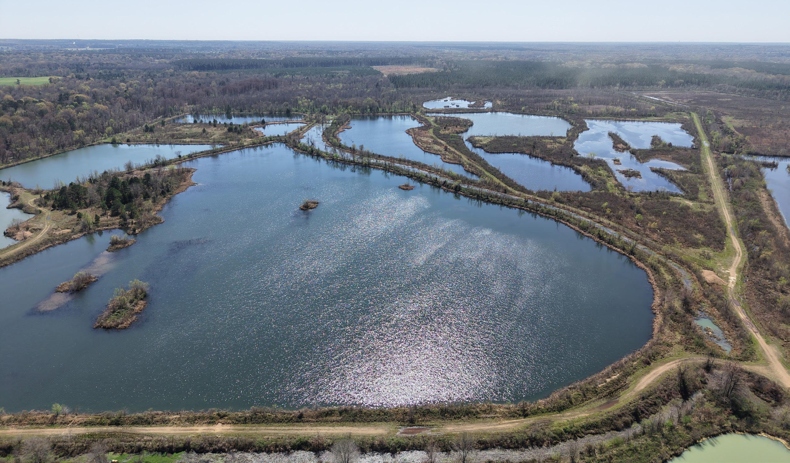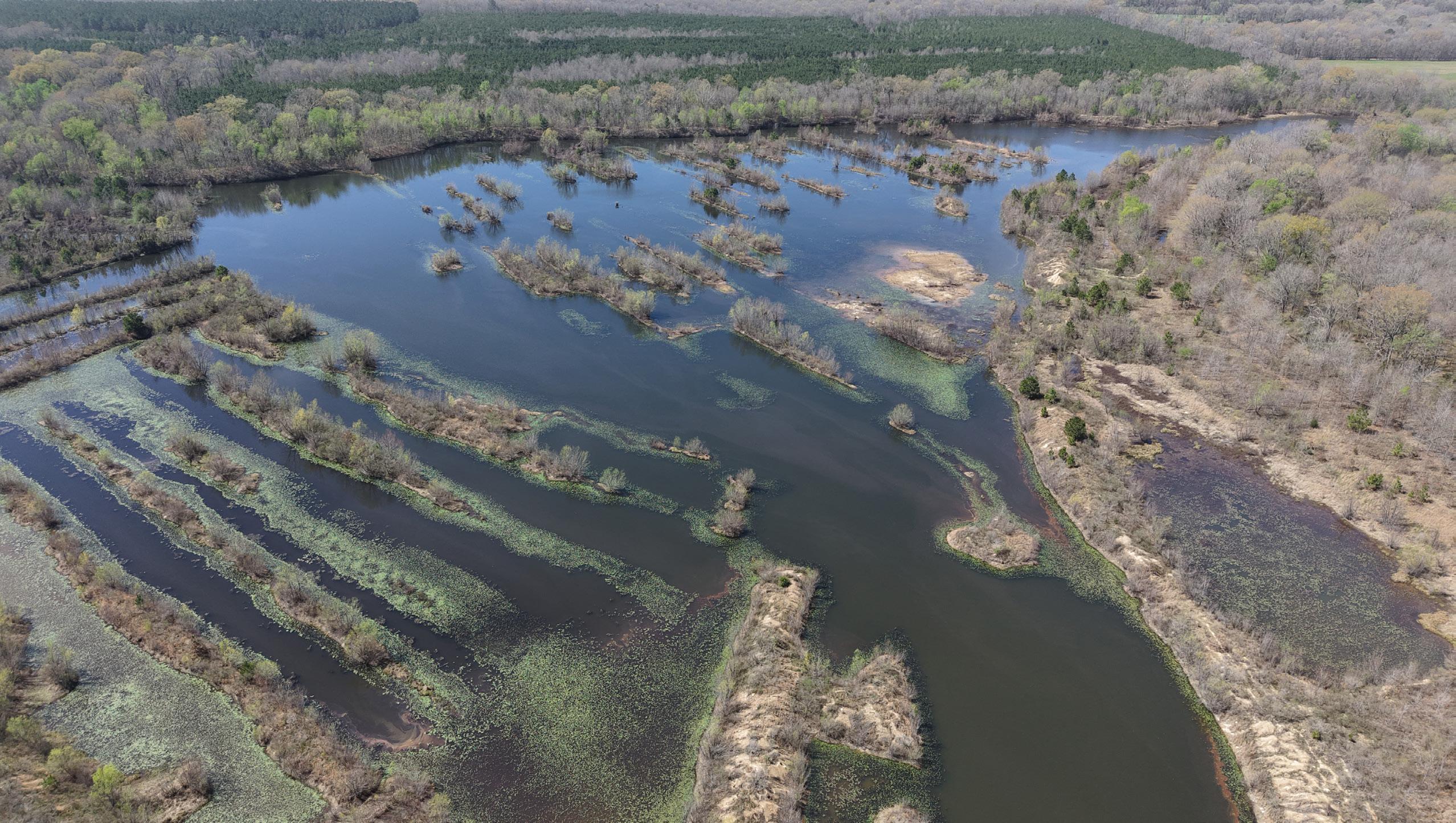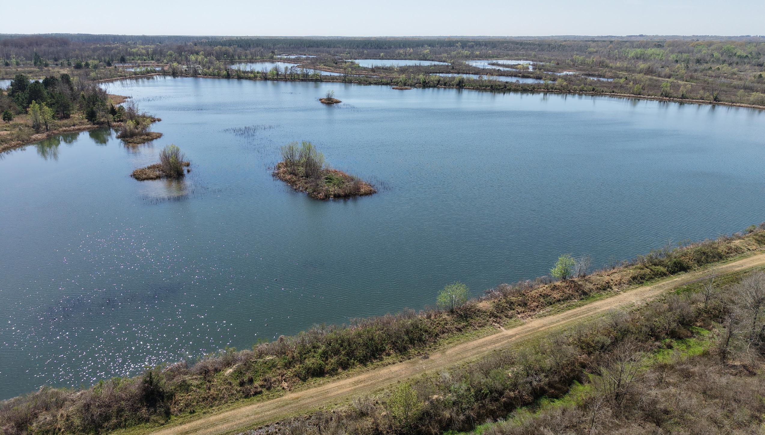 An interior road and levee system connects the ponds and provides excellent internal access. These ponds could easily be merged to create several larger bodies of water, and their varying depths and topography offer strong potential to further enhance fishing throughout the property.