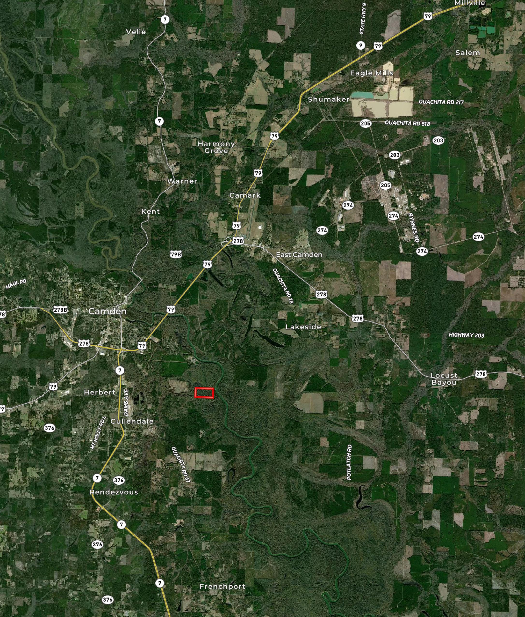 Two Bayou 80 is located in Ouachita County southeast of Camden, Arkansas. The property features 80± acres nestled in the scenic Ouachita River Bottoms and offers a timberland and recreational hunting opportunity. The timber was harvested 30± years ago and has since reestablished itself in young hardwood timber. Two Bayou meanders