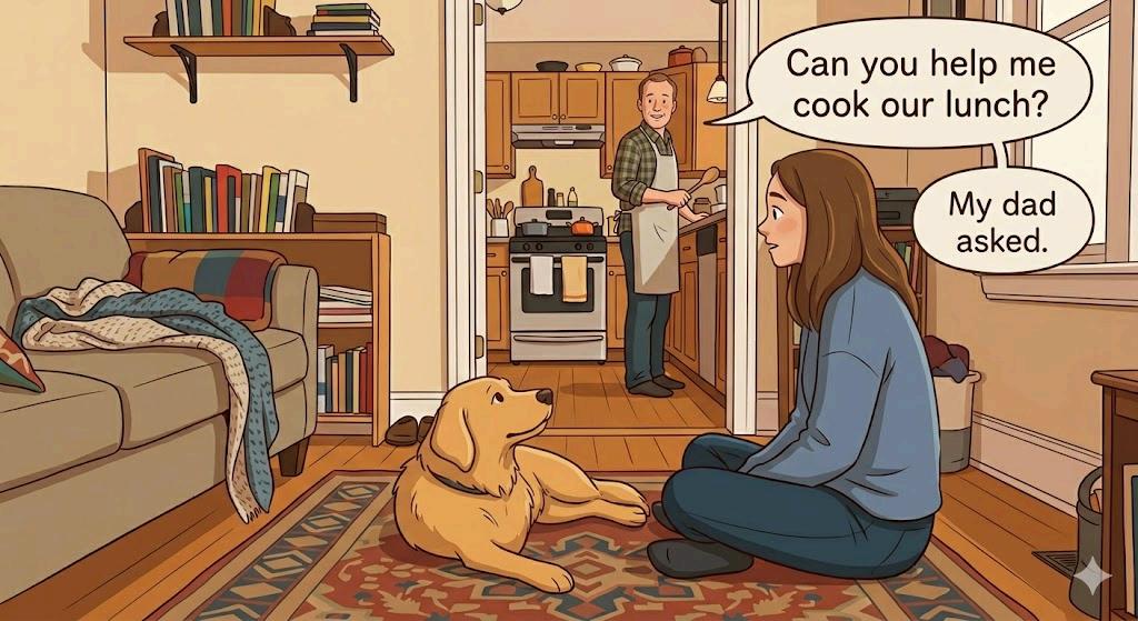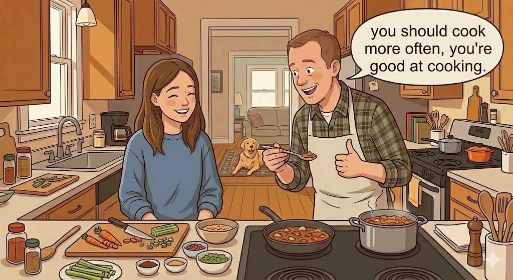 My dad tried the food I cooked and said, My dad tried the food I cooked and said, I nodded and smiled. I nodded and smiled.