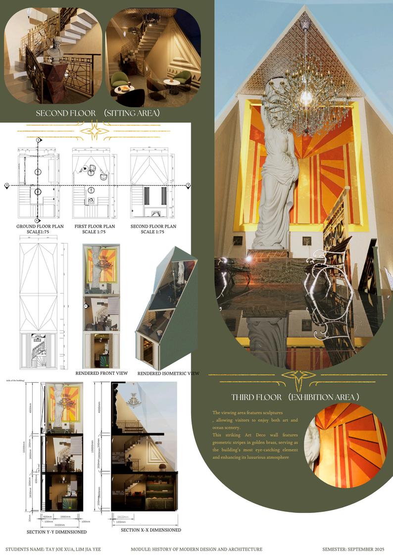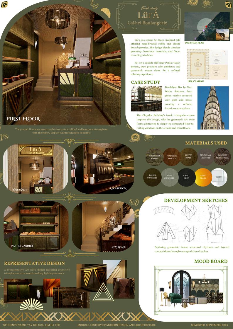 This project was under History of Modern Design & Architecture. The project is to design a Cafe by applied Art Deco design style.