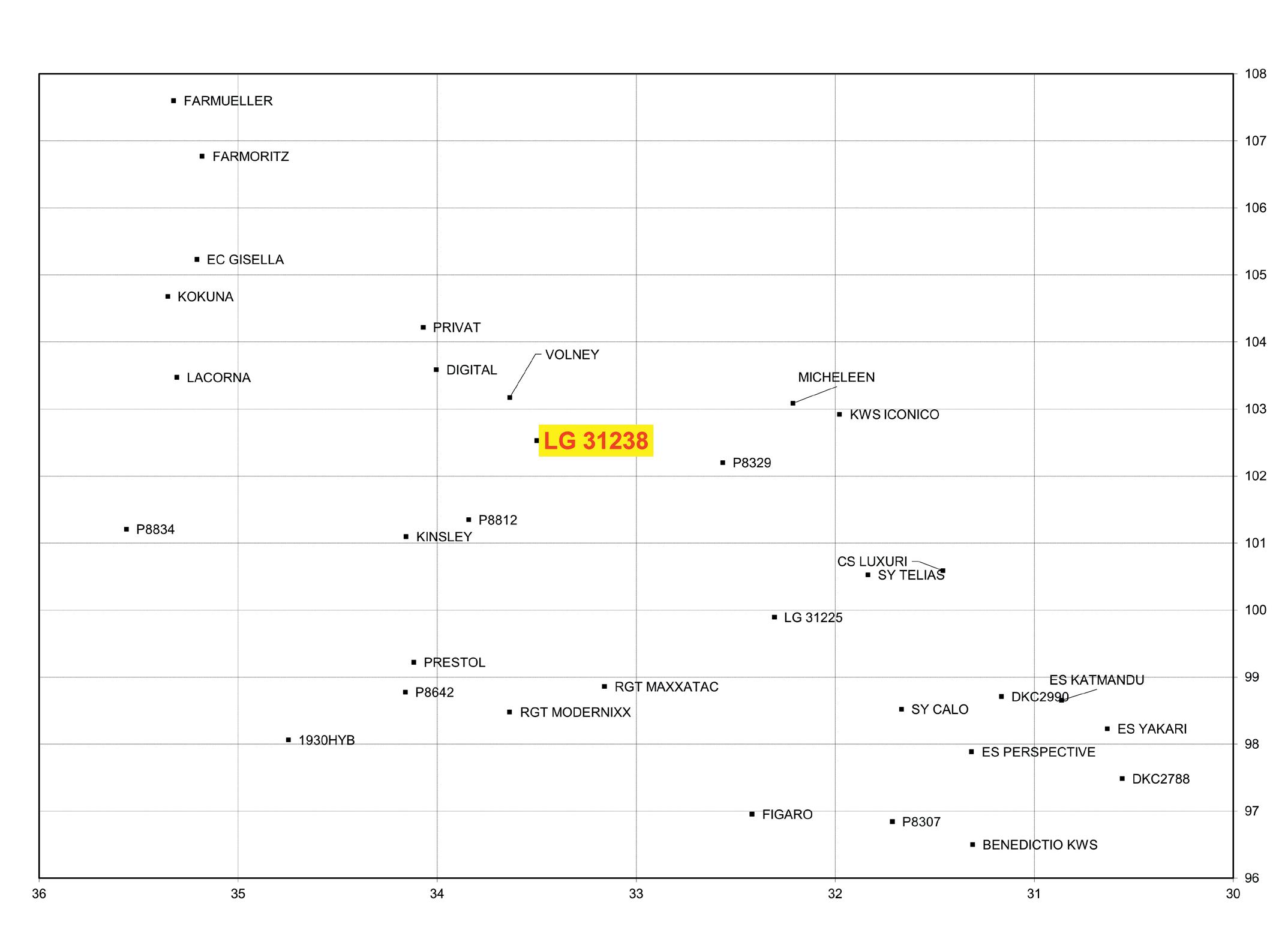 % MATIÈRE SÈCHE VS. RENDEMENT MS/HA (REL. PAR RAPPORT À 10 TÉMOINS)