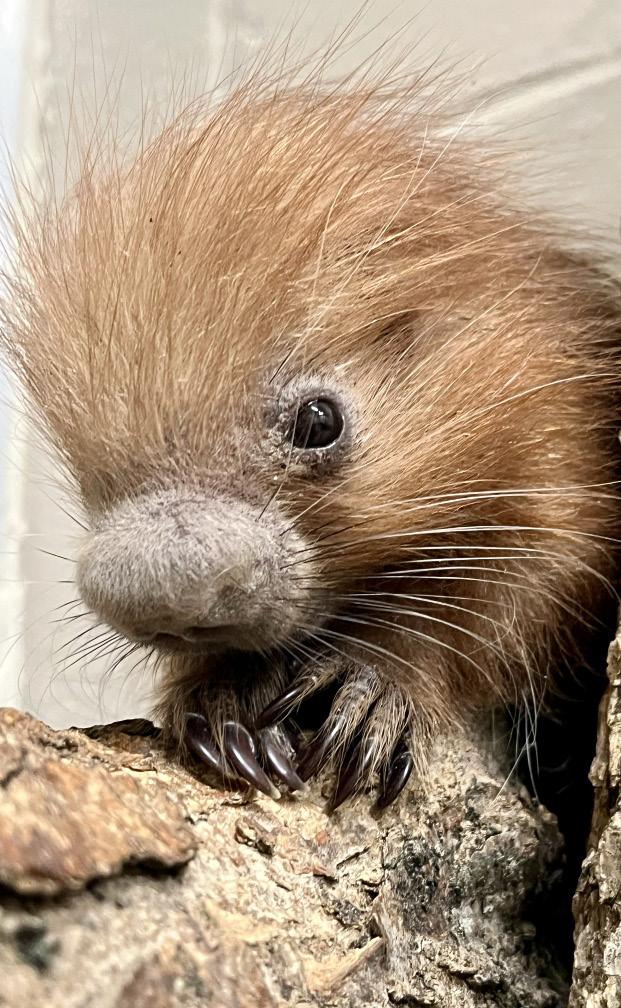 This baby porcupine, along with the Zoo’s two other prehensiletailed porcupines, are ambassador animals and live behind the scenes. They engage with guests through programs at the Wild Safari Theater, education programs and special events. The birth of this porcupette is significant for the Zoo’s ambassador animal program. Ambassador animals play a vital role in connecting guests to wildlife and inspiring conservation action.