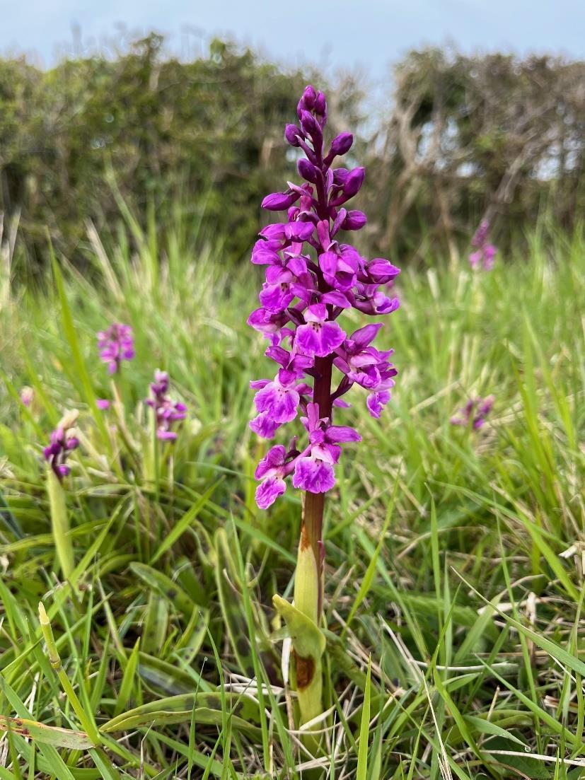 Early purple orchids in the road verge at Hawthorpe