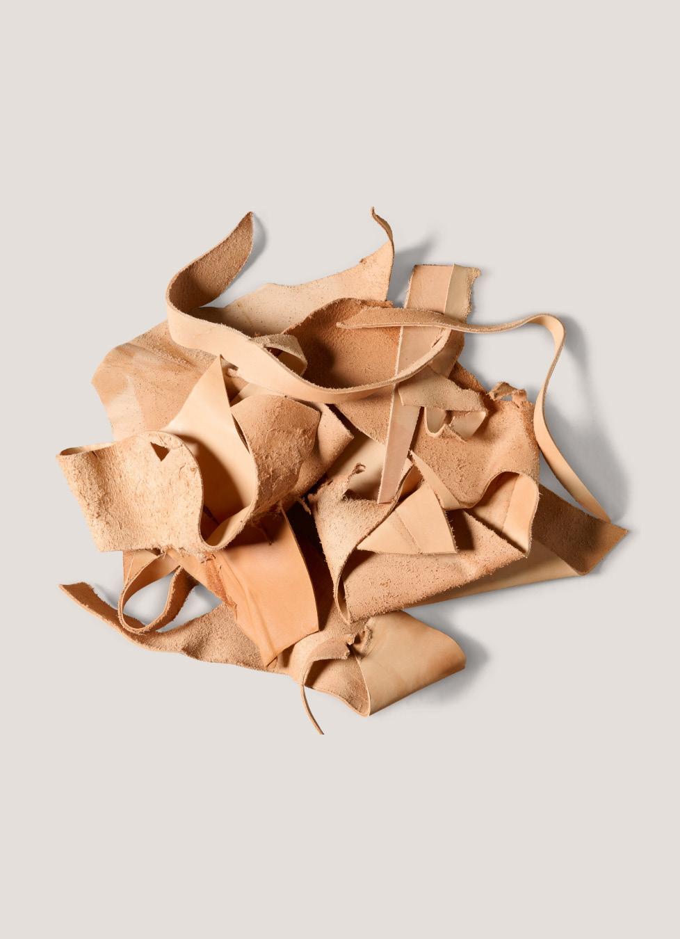 Leftover pieces of core leather from furniture and fashion production are collected to be transformed into our recycled leather.