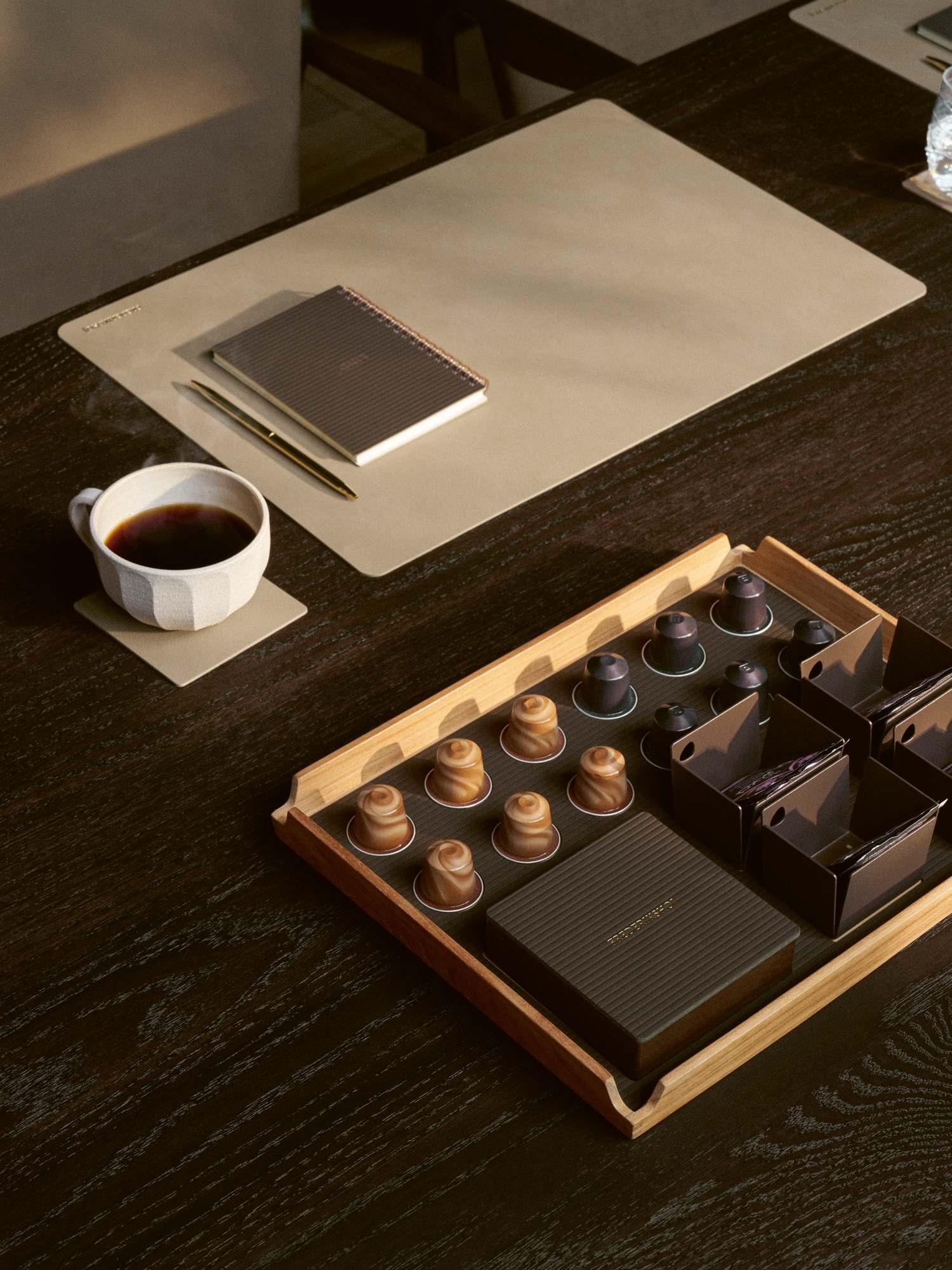 ee Tray Inlay for all trays is cra ed from recycled leather with cut-outs, ensuring stable placement of various components and a polished look for your tray.