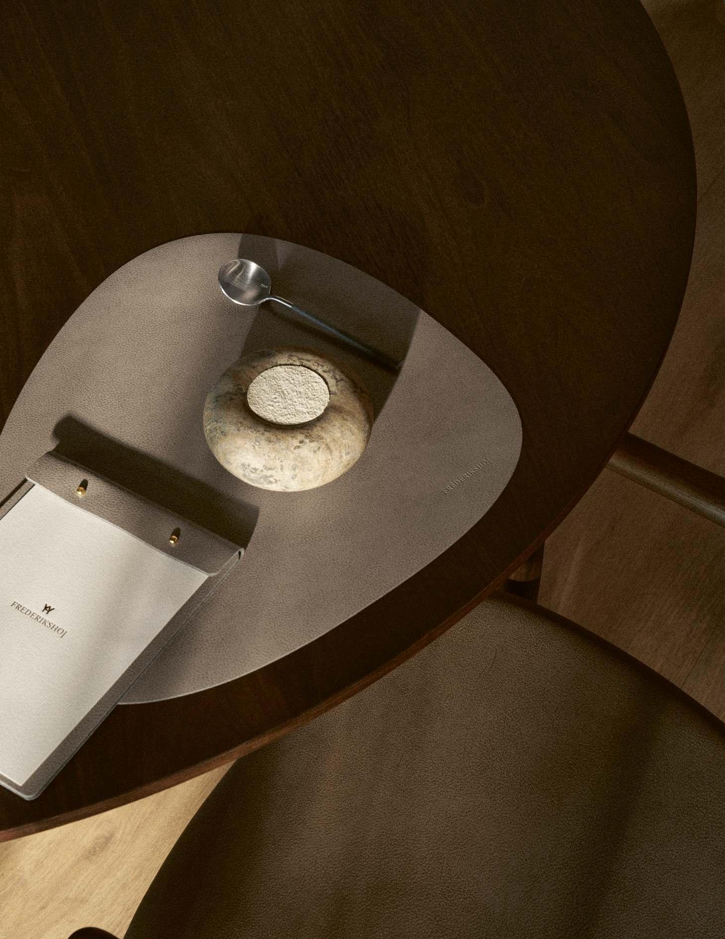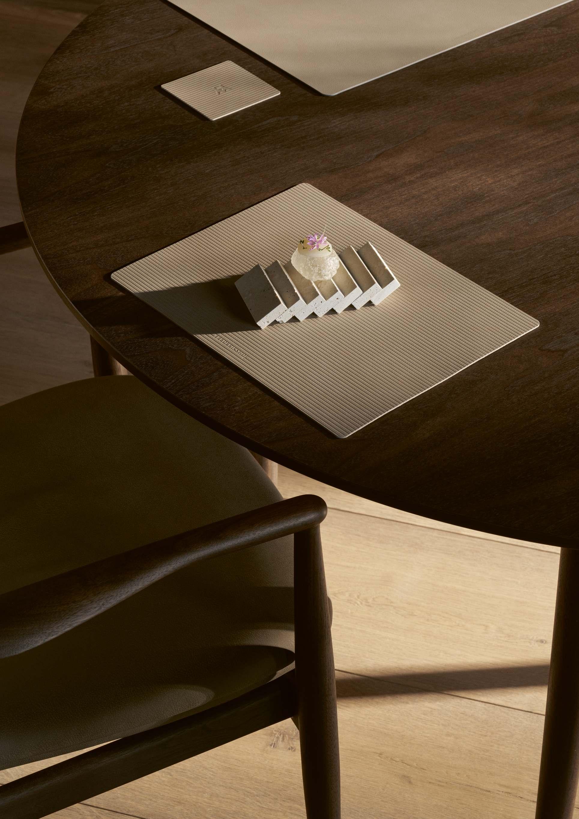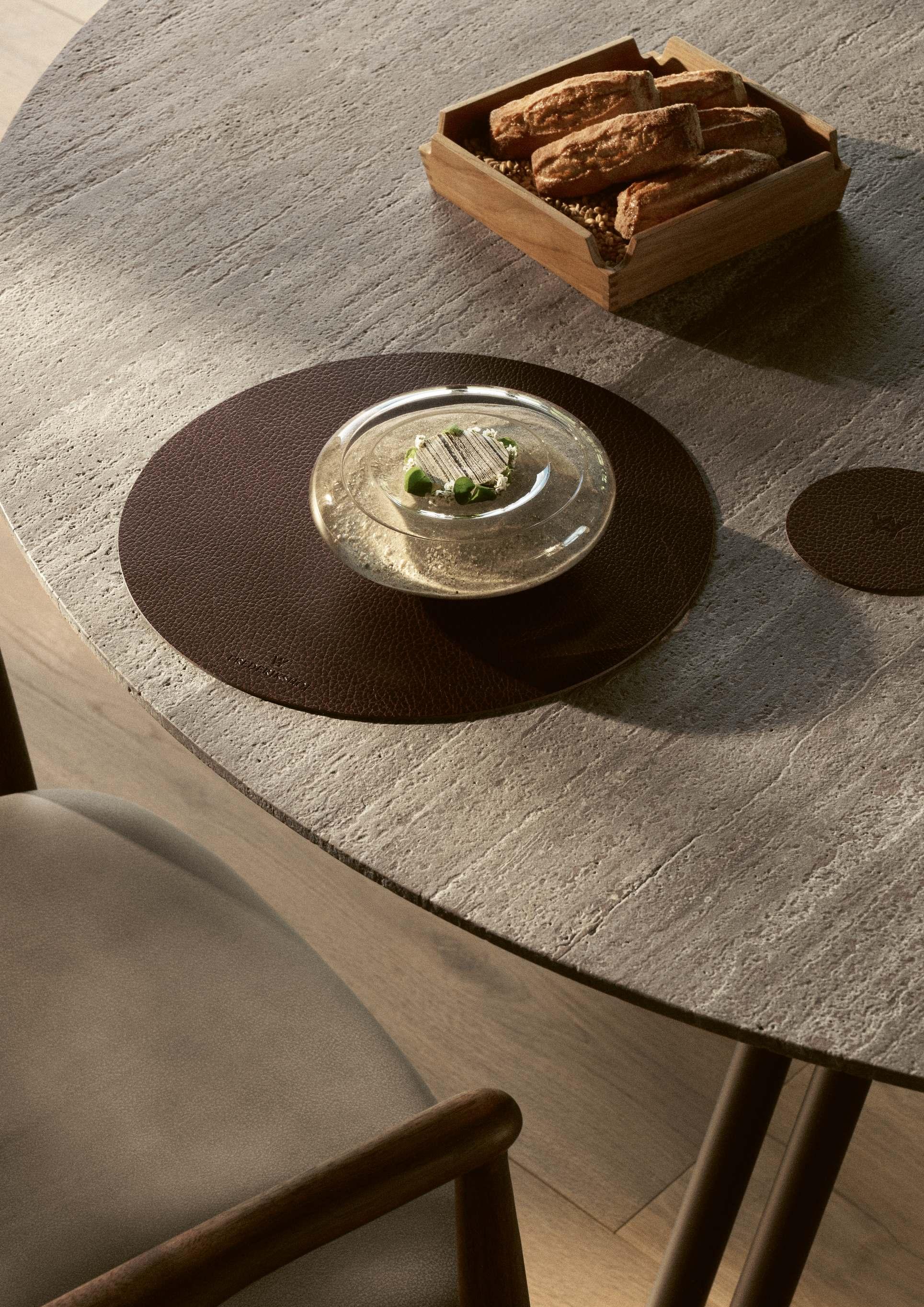 Founded by the Lind family in 2013, LIND DNA quickly became a pioneer in recycled leather table accessories, especially known for the iconic Curve shape. With LIND DNA Professionals, the range now meets the demands of high-end hospitality, o ering durable, recycled leather designs that combine function with re"ned aesthetics.