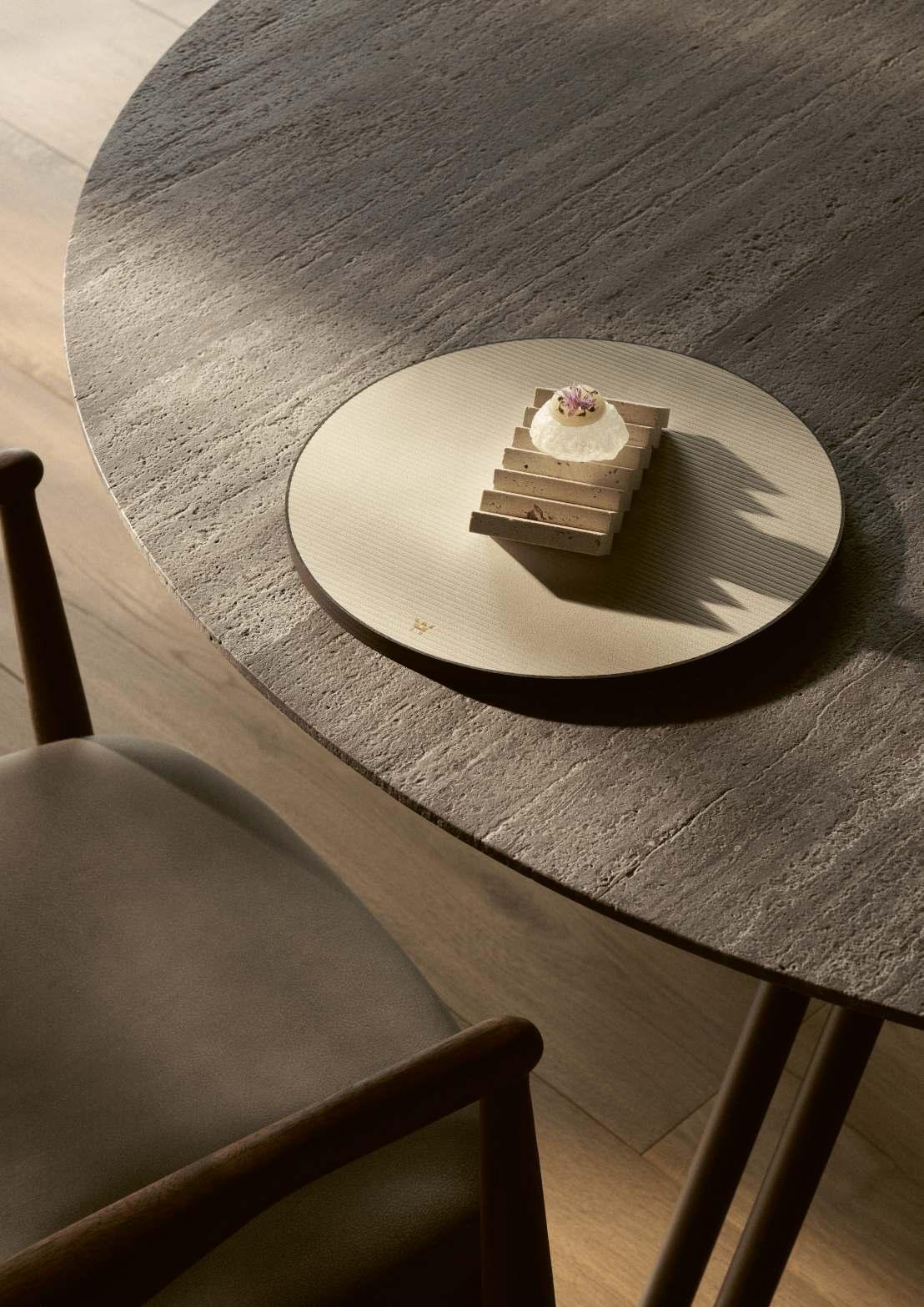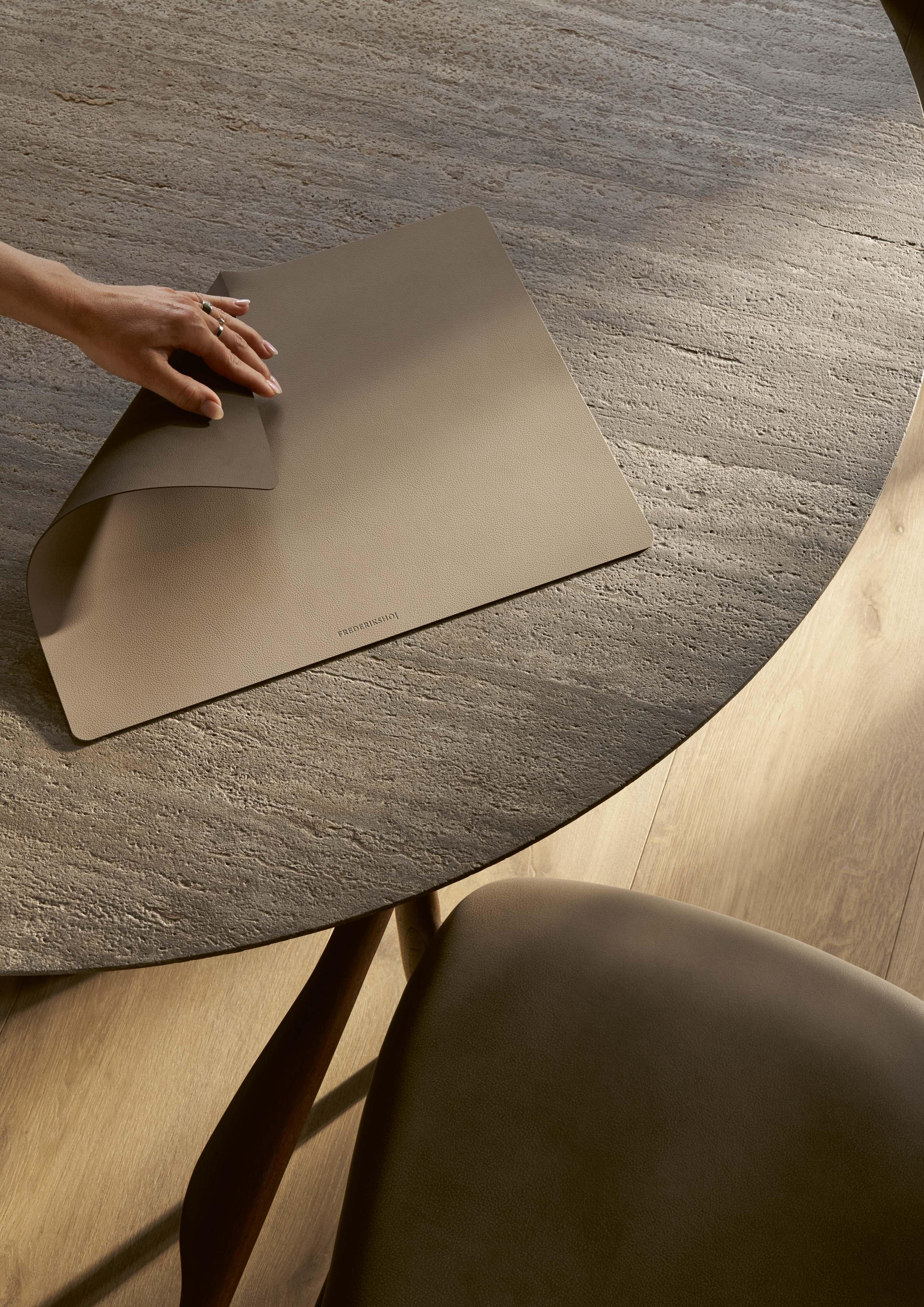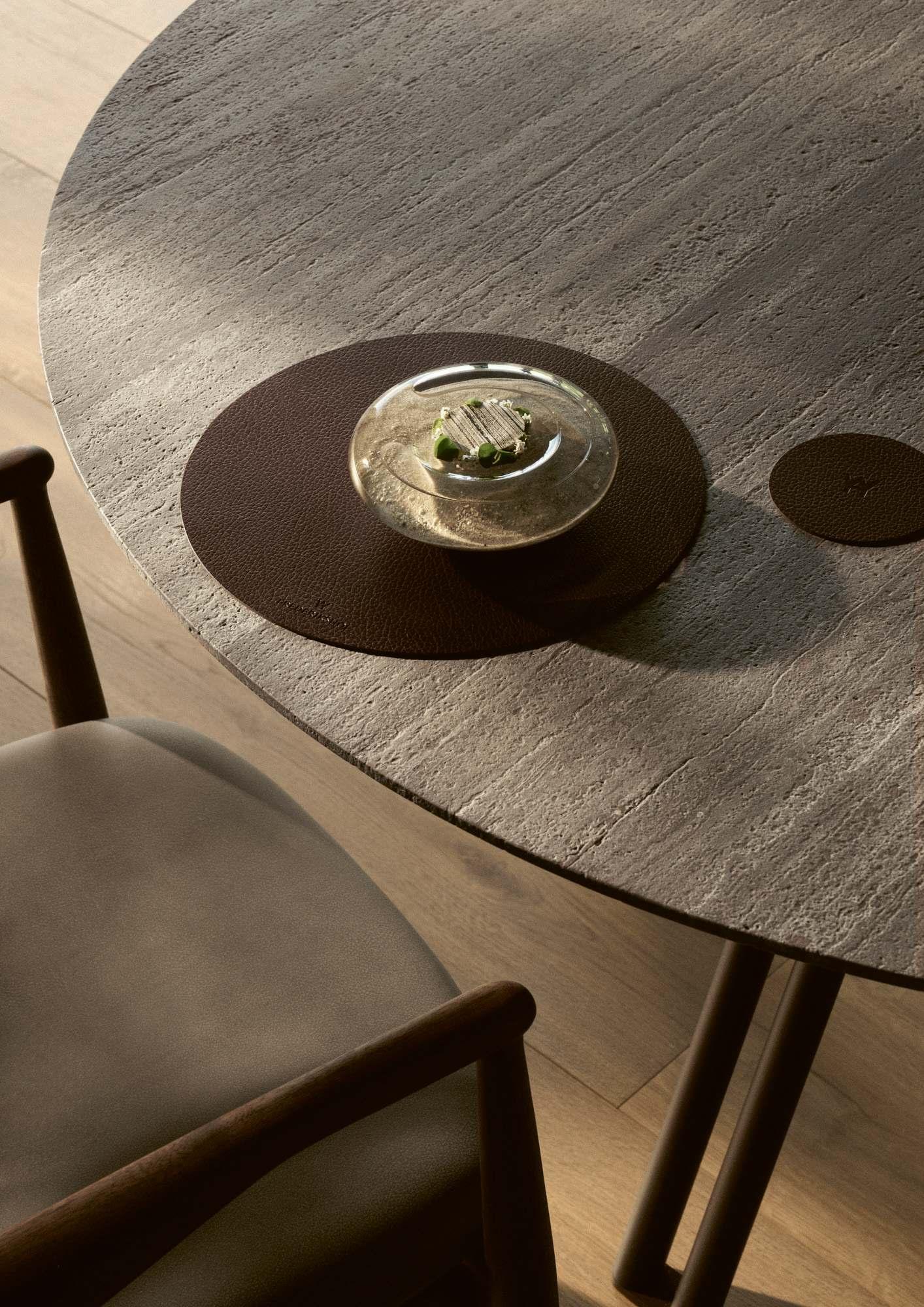 Founded by the Lind family in 2013, LIND DNA quickly became a pioneer in recycled leather table accessories, especially known for the iconic Curve shape. With LIND DNA Professionals, the range now meets the demands of high-end hospitality, o ering durable, recycled leather designs that combine function with re"ned aesthetics.
