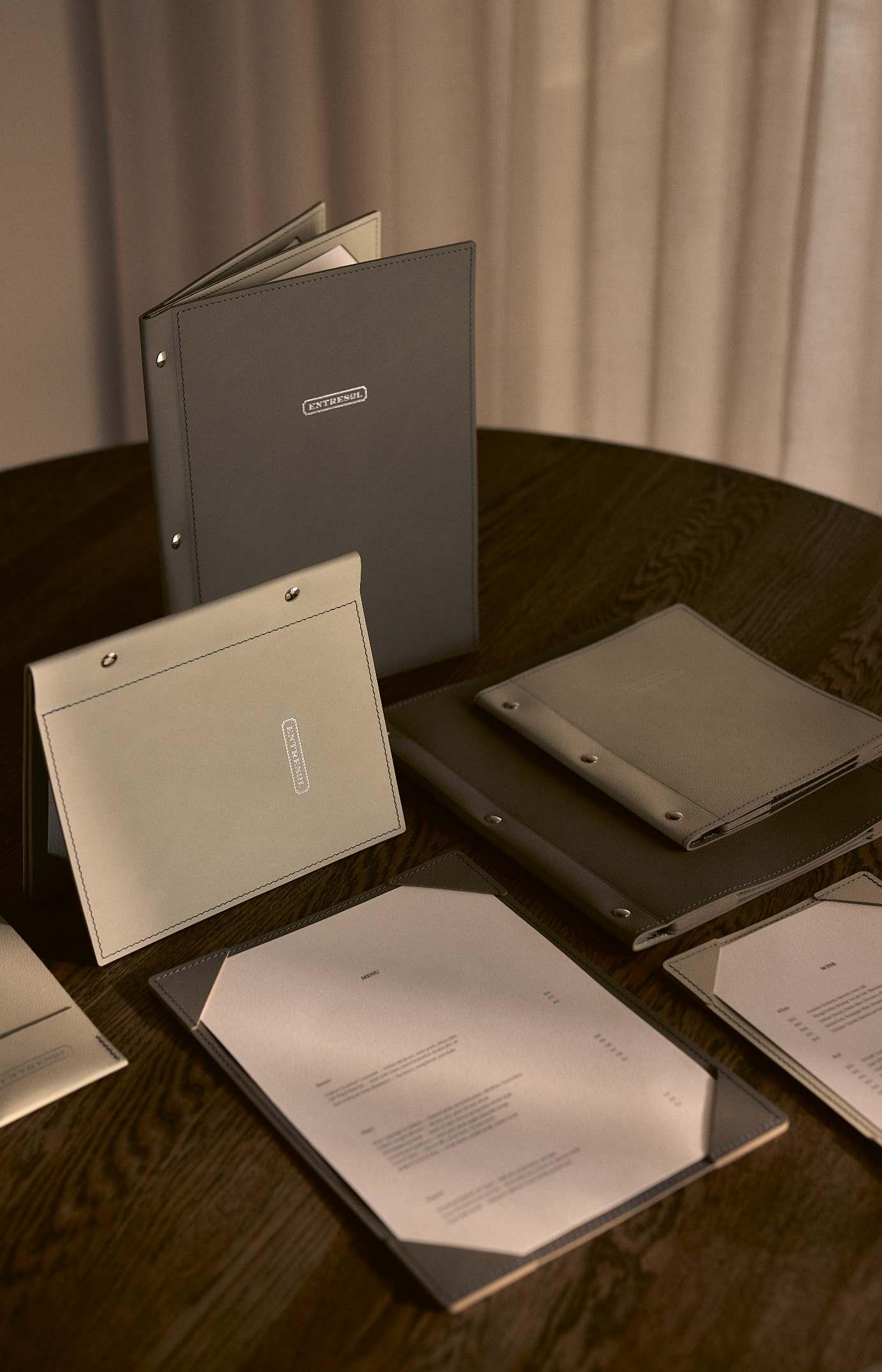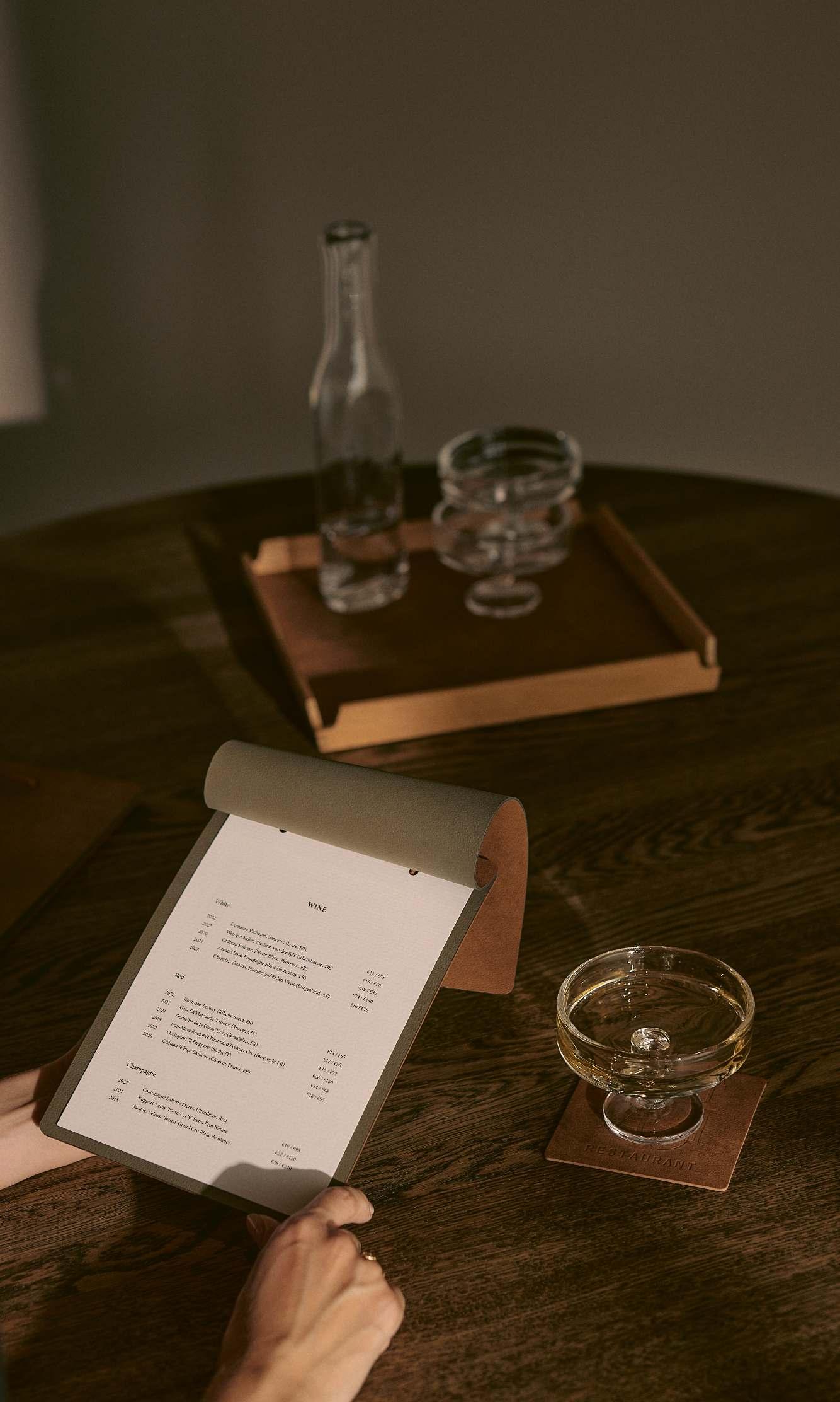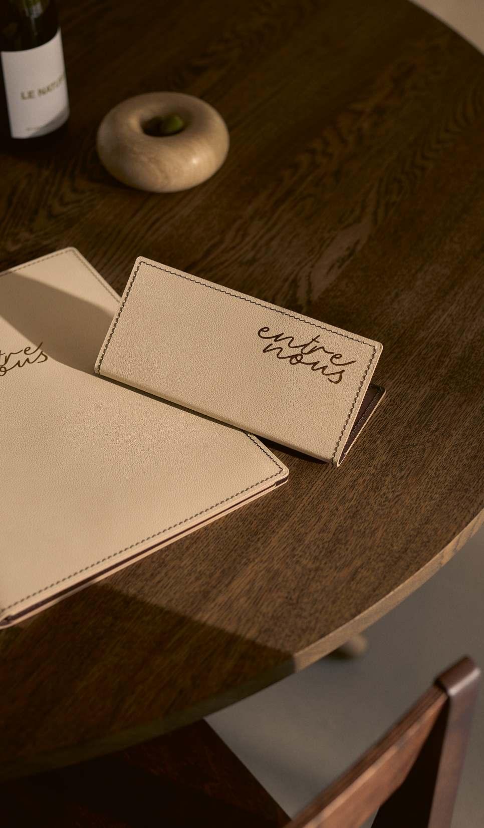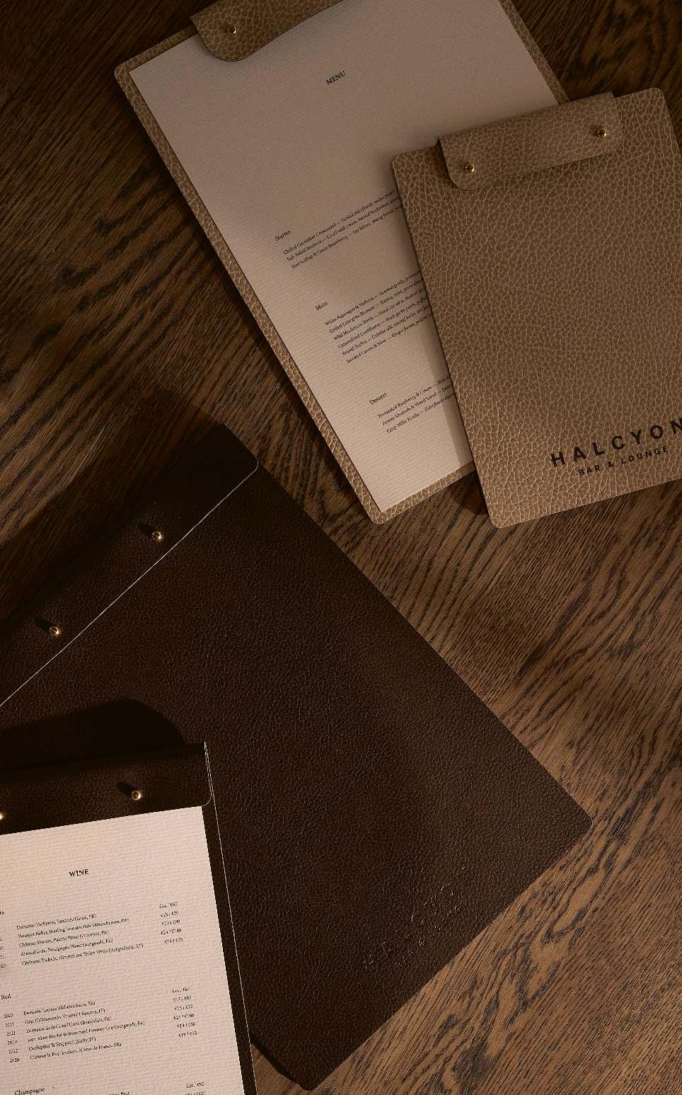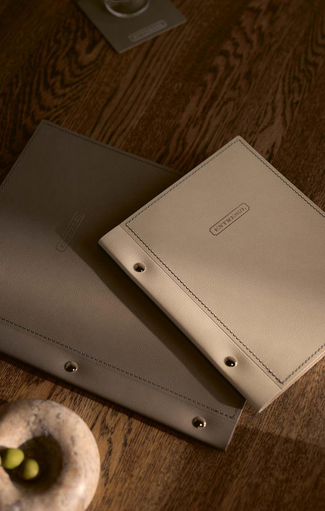 From table mats and glass mats to menu holders and bespoke creations—if you can imagine it, we can cra it. Our luxury recycled leather o ers endless possibilities in colour, shape, and texture, cra ed to re%ect your unique style and elevate every guest experience. Bring Your Vision