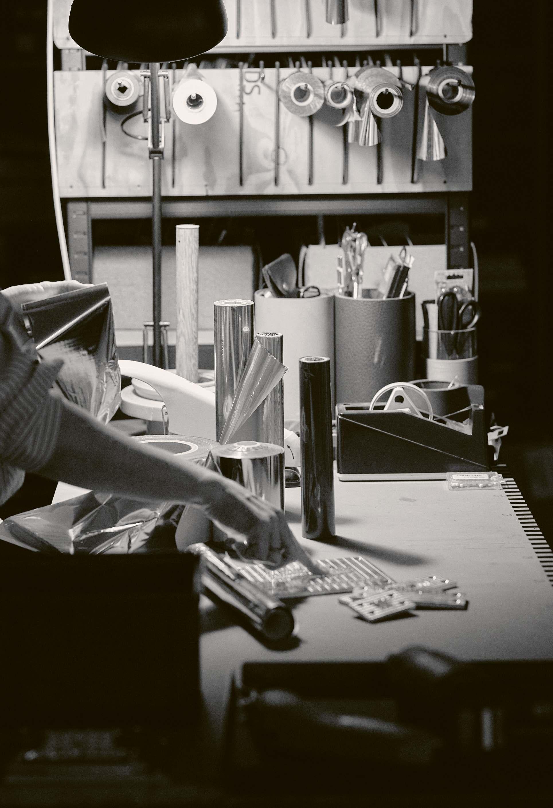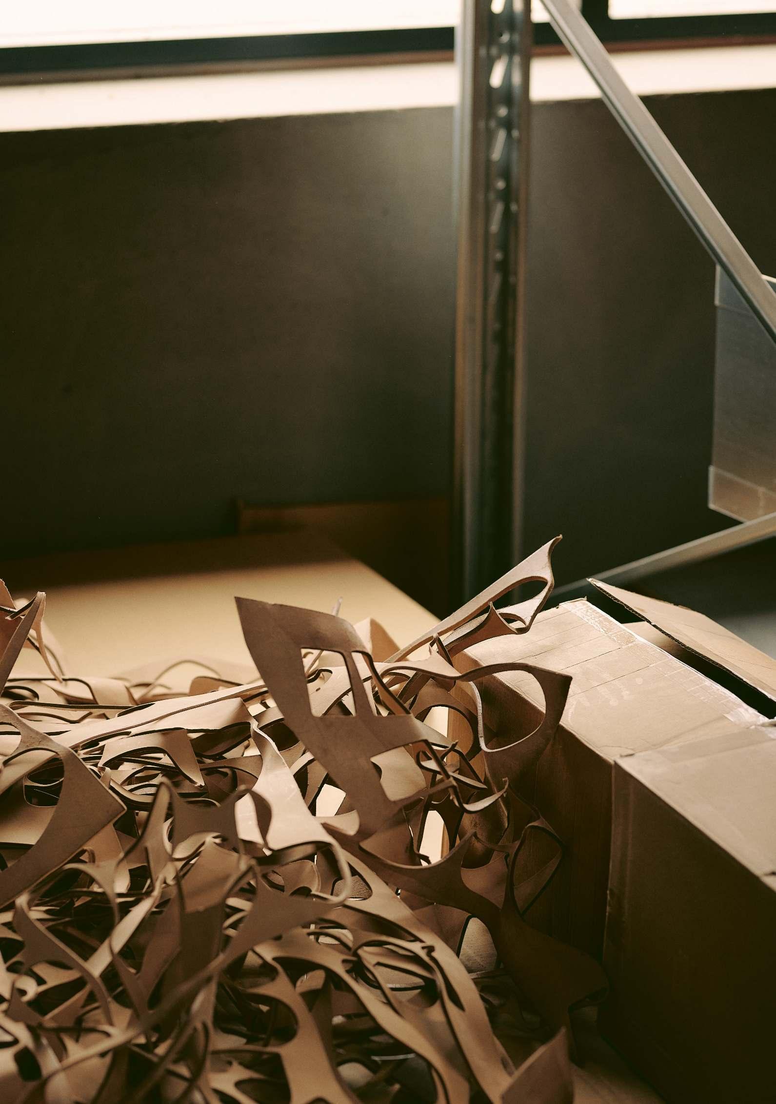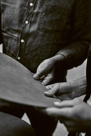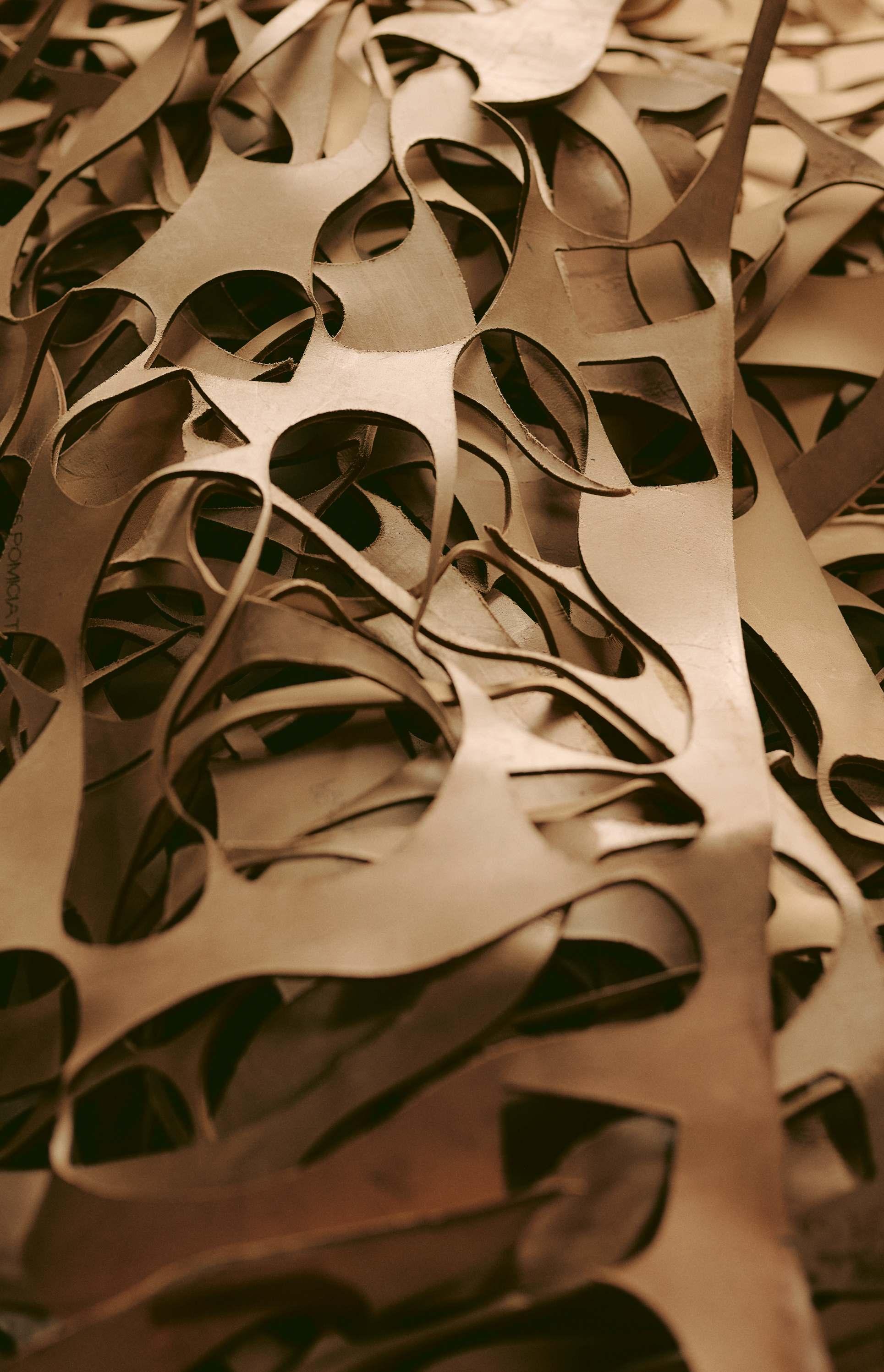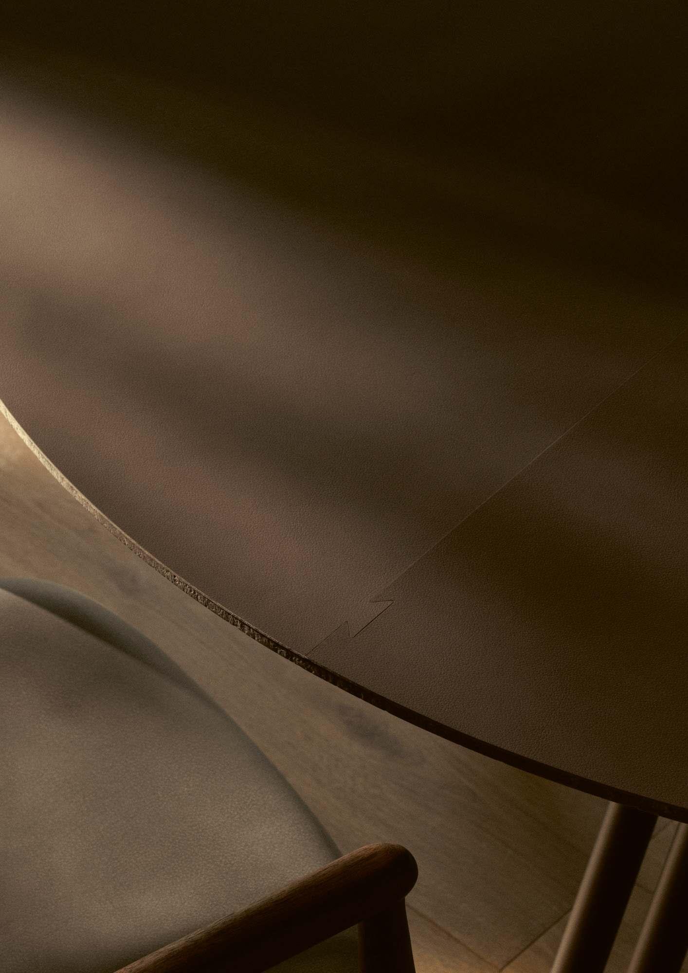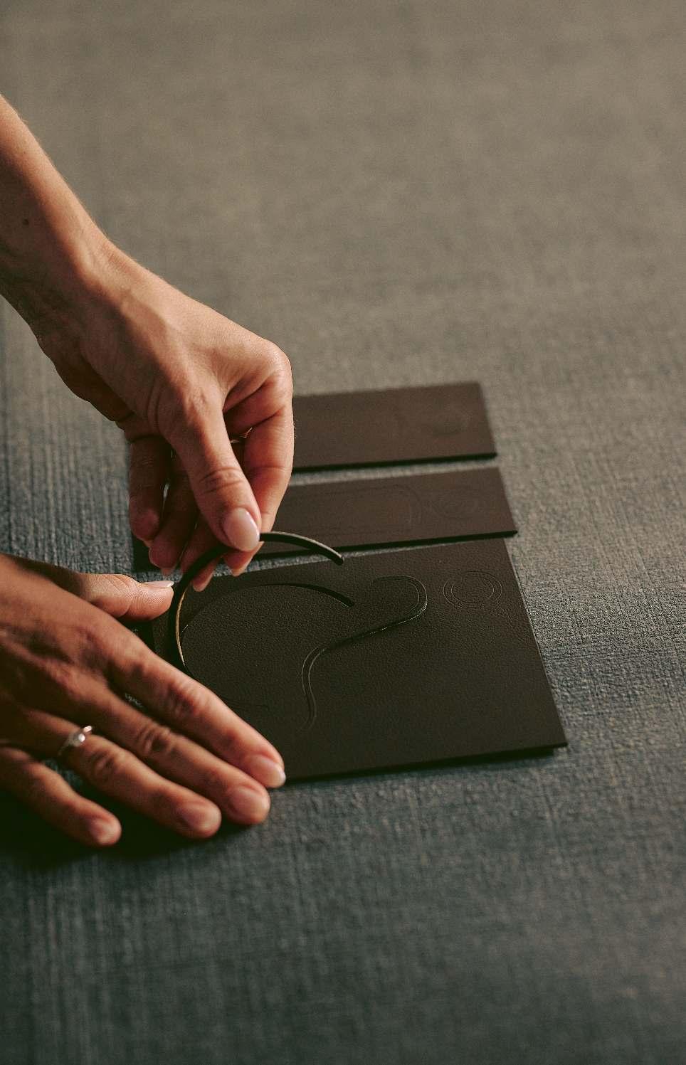At our in-house artisan facility in Aarhus, Denmark each element is shaped by hand and with care. Here, the recycled leather is cut, debossed, and refined into customis ed designs.