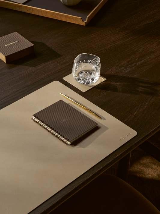 An elegant napkin holder in double-sided leather, reversible for a di erent look. Canbemadewithlogodebossingforaspecialdetail.
