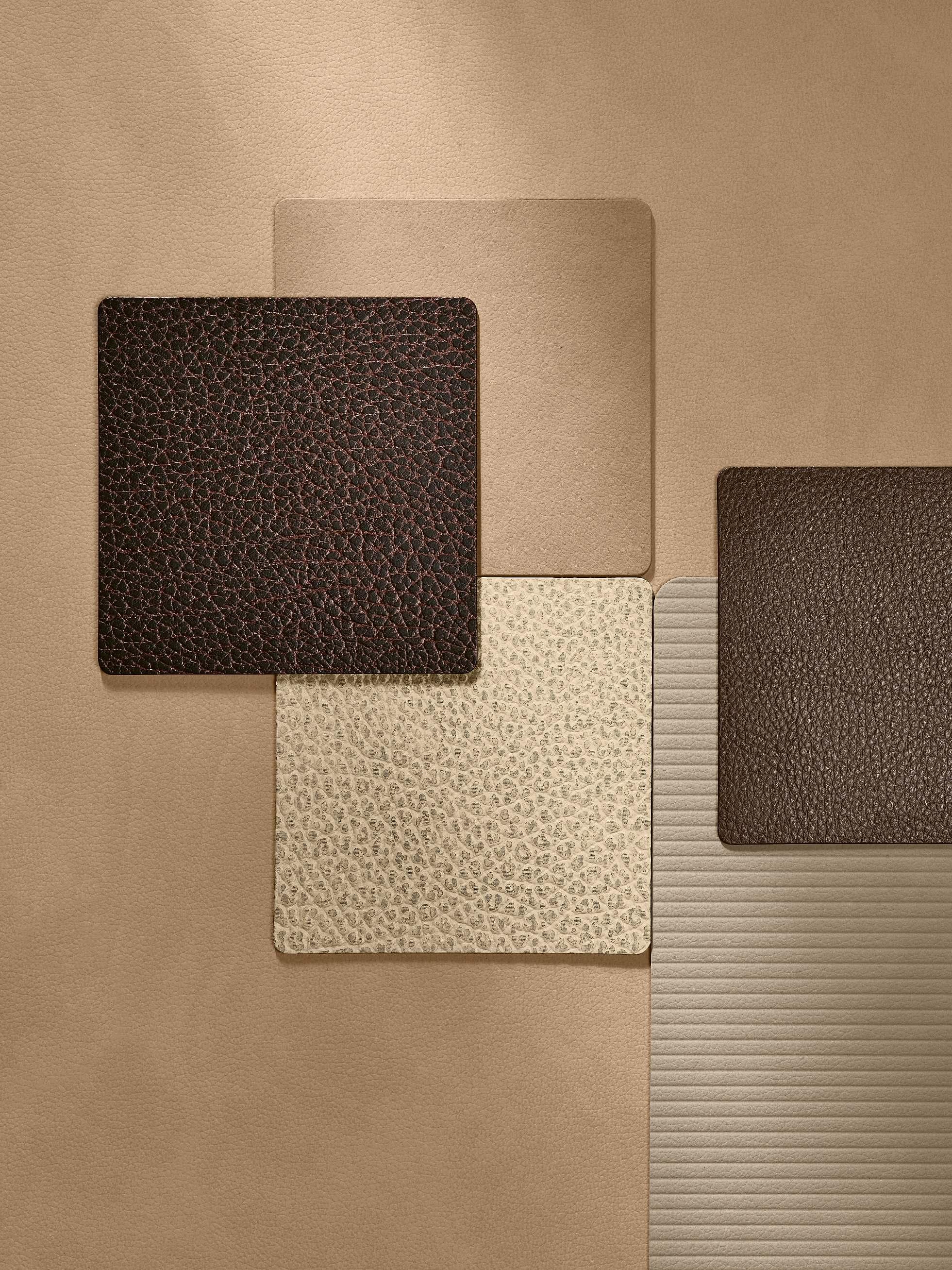 Choose from 7 recycled leather textures and over 100 colours—varying by product—to perfectly suit your colour scheme.