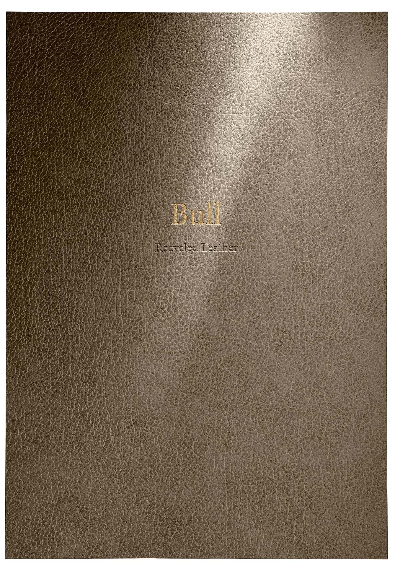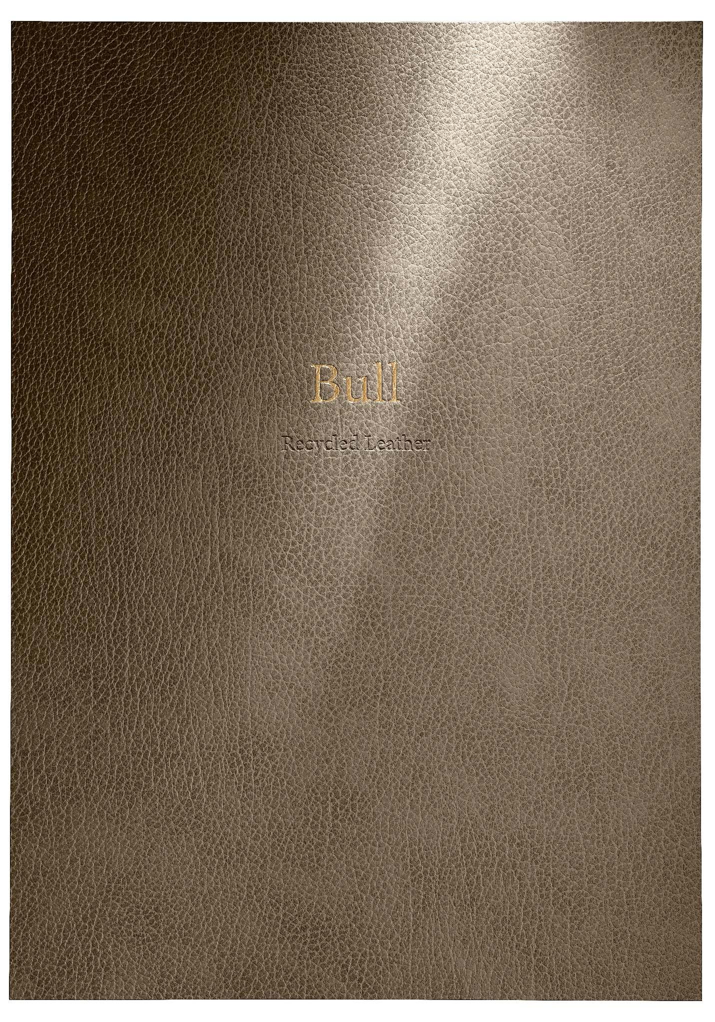 Bull is one of our most durable recycled leather textures, created to withstand the demands of busy environments. Its surface is easy to clean and maintain, making it ideal for high-tra'c settings where appearance and practicality matter.