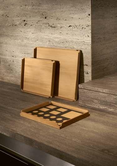 Teak Tray Airy combines a modern, timeless design with open corners and meticulously cra ed "nger joints. Made from recycled teak and treated to resist marks. Available with or without inlays and comes with discreet pads underneath to protect surfaces from scratches.