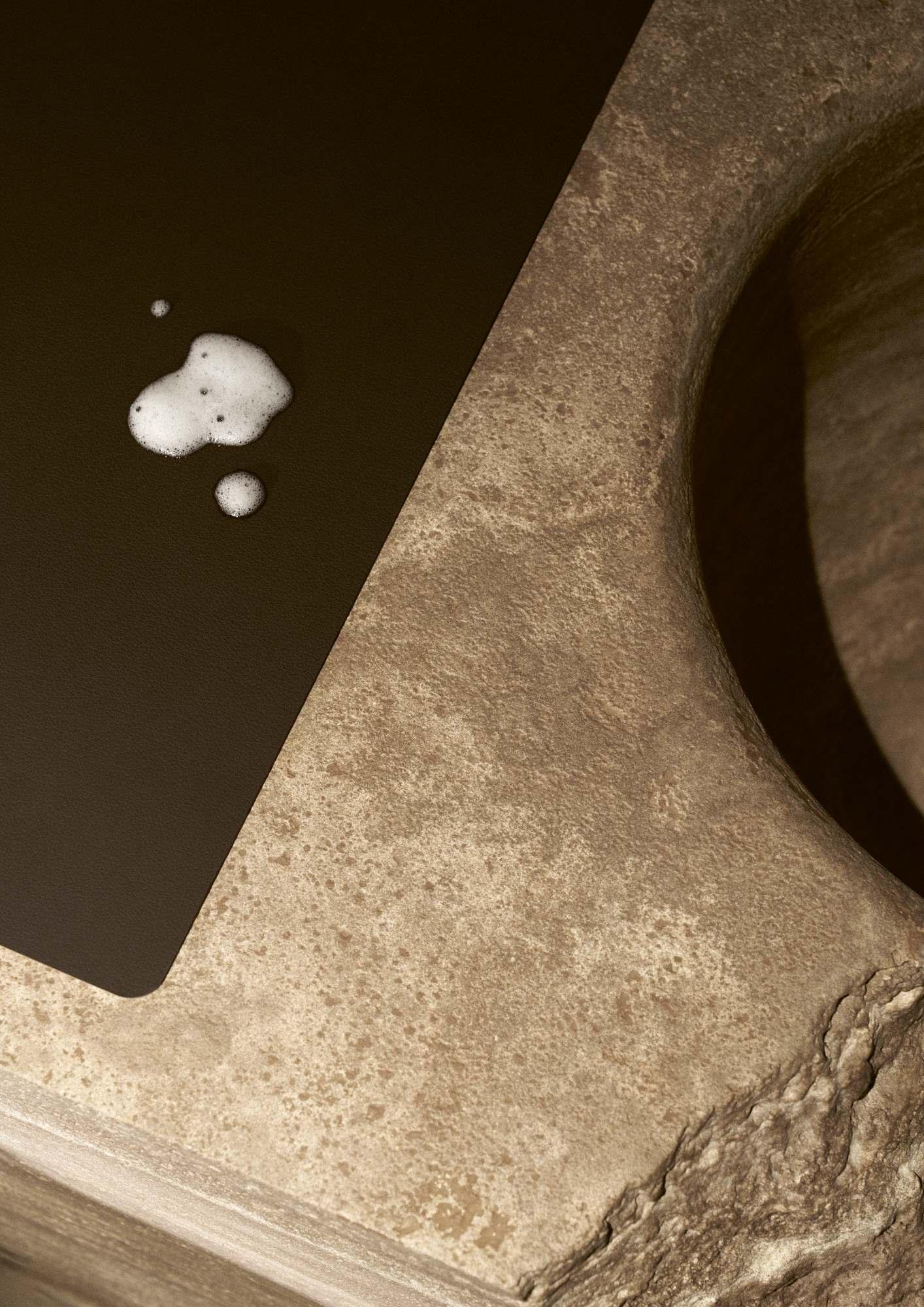 e signature recycled leather of LIND DNA is made from high–quality surplus leather from the furniture and fashion industry. e le over core leather is "nely ground and fused with natural rubber—a composition of 80% granulated leather and 20% natural rubber. is natural blend not only gives new life to discarded materials but also makes the leather stronger, more durable, and more resistant than in its original form.