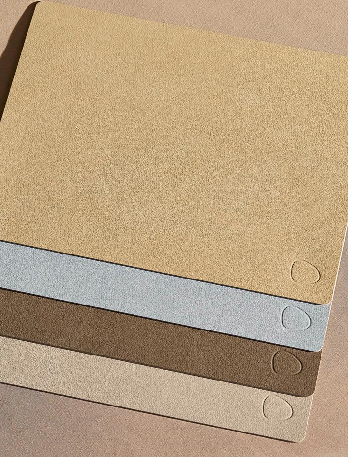 Explore our extensive range of table mats and glass mats crafted in Denmark from recycled leather. Available in various sizes in the shapes Curve, Square and Circle, our collection offers versatility and style. Choose from eight leather variants, each featuring a unique colour selection. With our diverse options, you can effortlessly enhance your table setting to match your individual taste and aesthetic preferences.