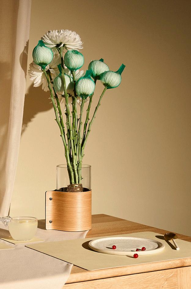 The concepts of presence and togetherness form the foundation of the Stool & Table. This piece is versatile in numerous ways – it can serve as a side table in the bedroom or lounge area, or as a seat for unexpected guests, enabling you to effortlessly sit down and be present. The Stool & Table is crafted from shaped aluminum, coated with recycled leather in five selected colours, and features an oak rod.