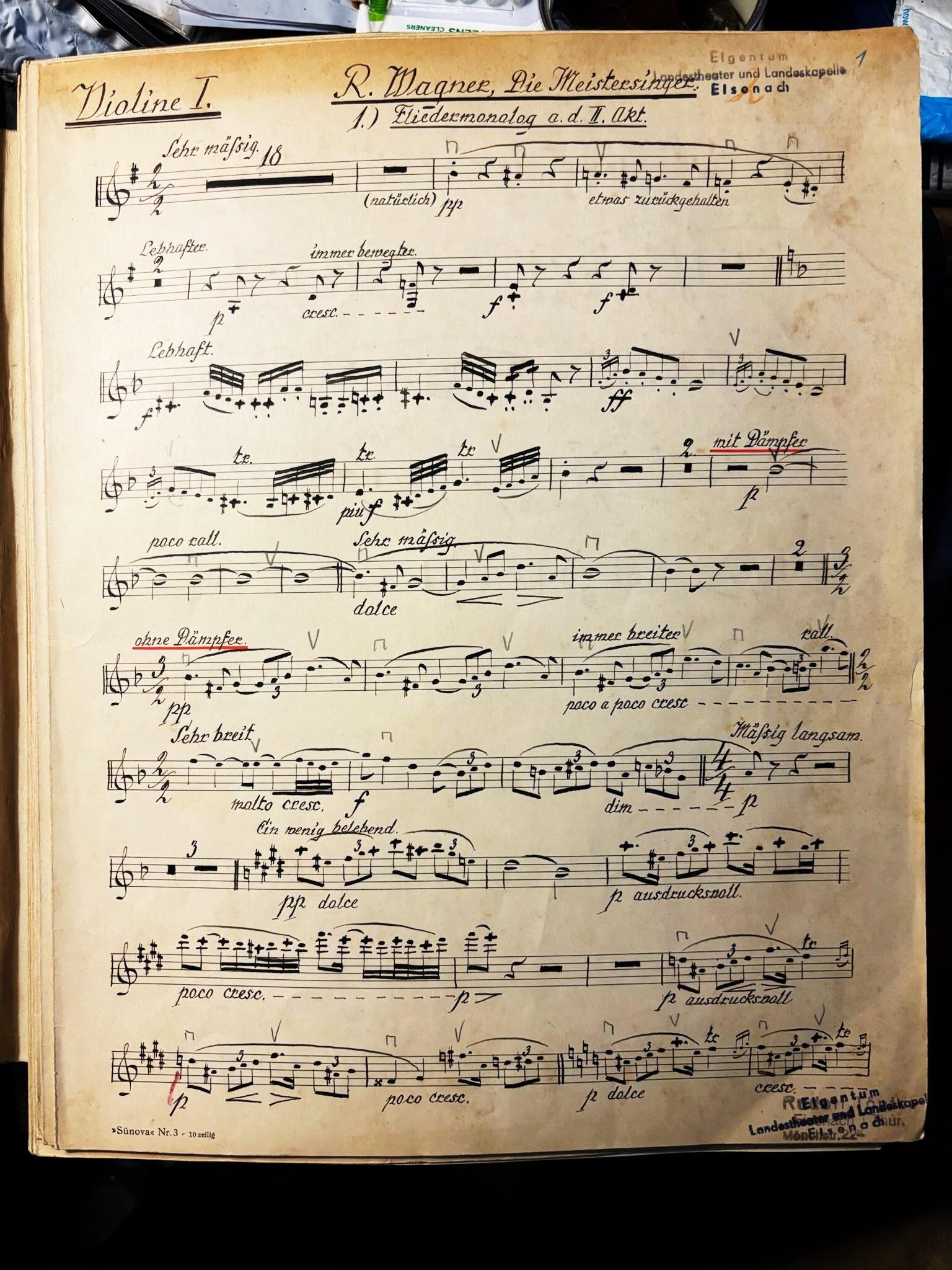 • The Curiosity: In Act II, Beckmesser marks Walther’s "errors" on a slate with loud, scratching chalk. The collection contains a slate used in the 1890s Thuringian productions (likely the Eisenach one) where the "chalk marks" were actually painted on in a permanent white lead to ensure they were visible to the audience in the back of the gallery under the dim gaslight.