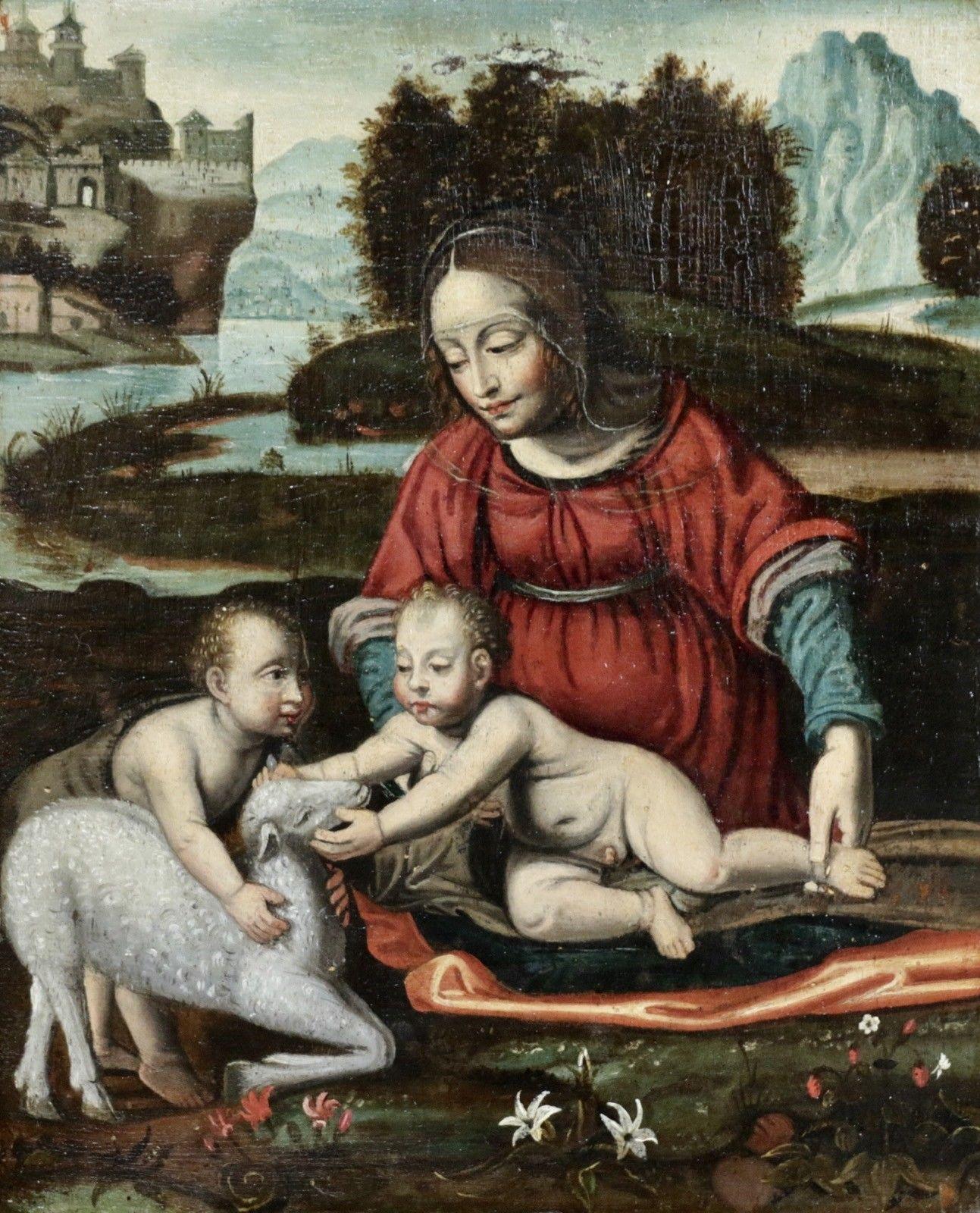 Mary with Jesus and John 17 th C. Oil on panel provenance Metayer & Associes in Paris.