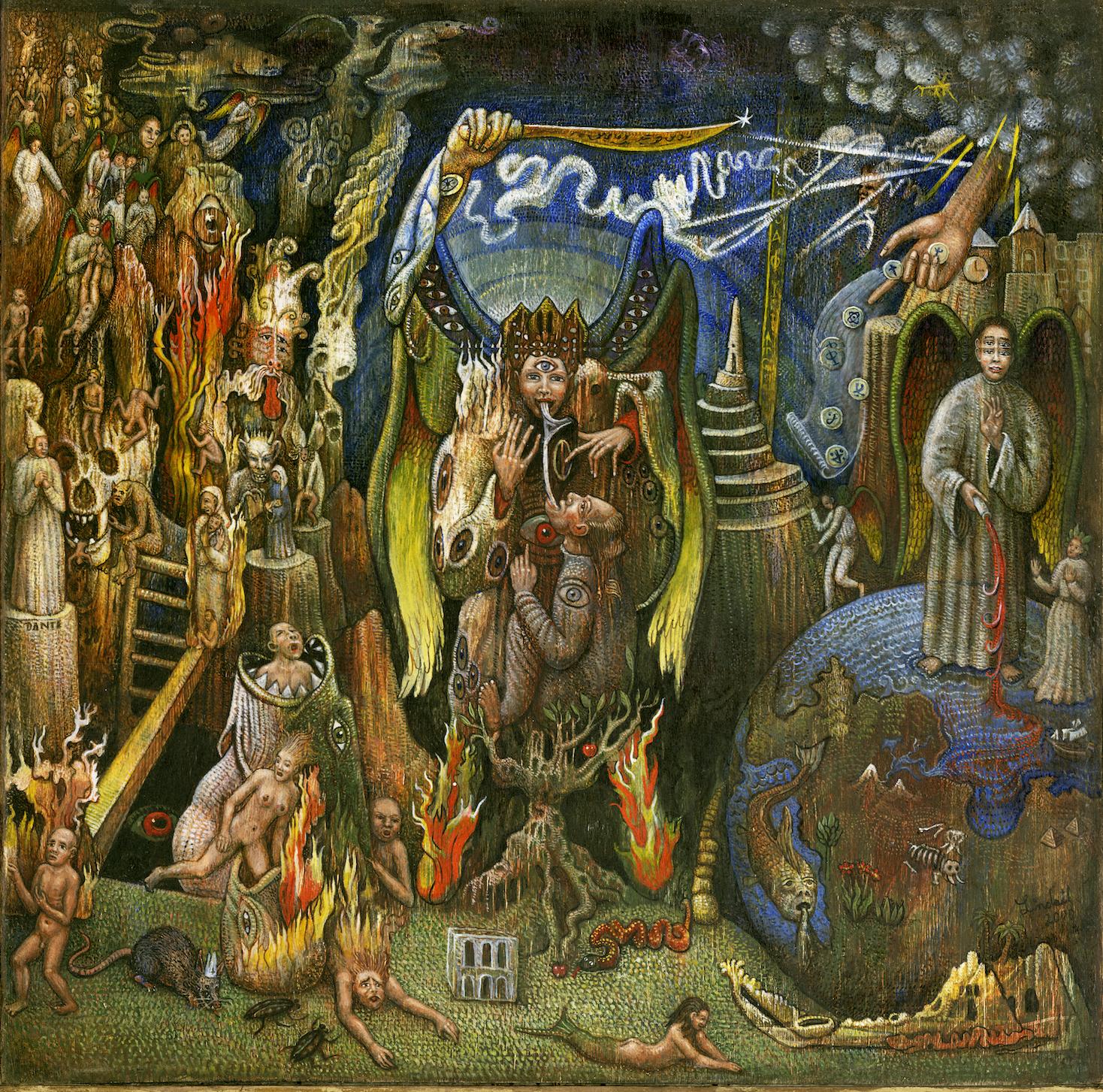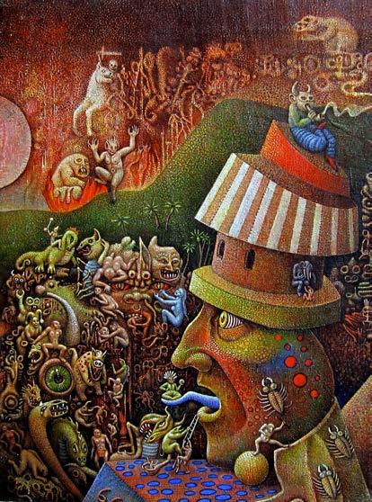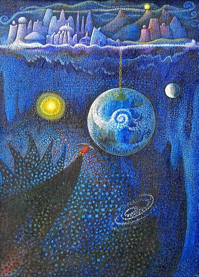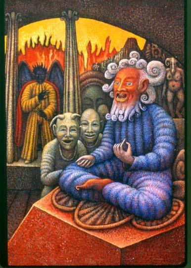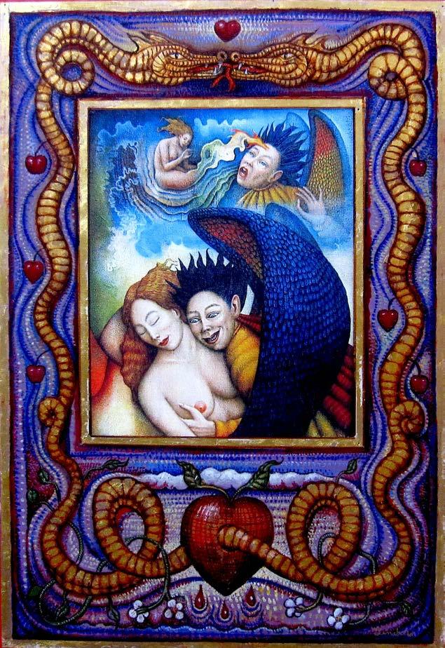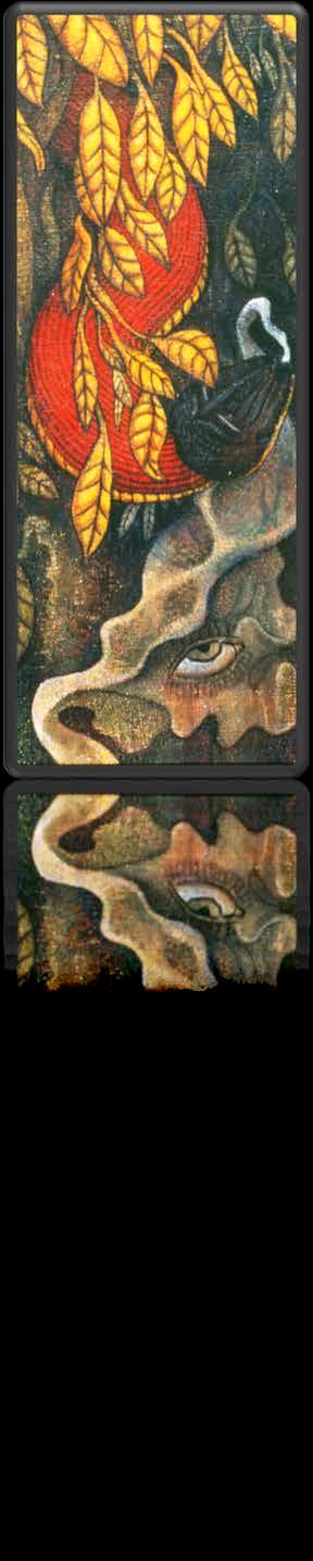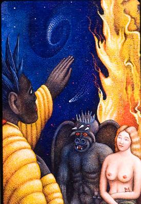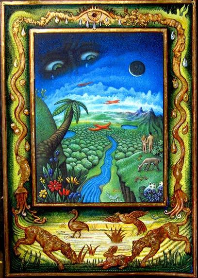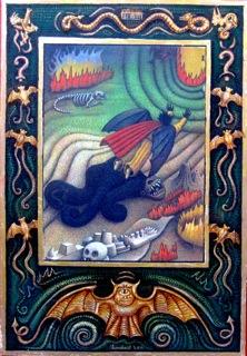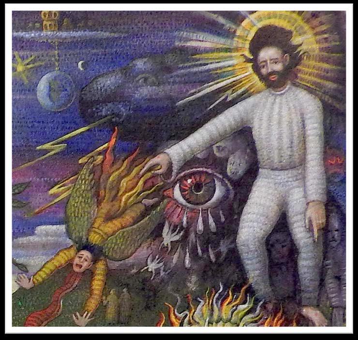“ …this is stunningly beautiful! There is so much to look at both traditional and intriguingly mysterious. It really makes me think of Blake's "Marriage of Heaven and Hell", as well as some of the Serb ian iconography I've been looking at recently in the monasteries of Fruska Gora . I visited the ancient monastery and chapel of Hopovo, and the brilliant colors of the figures crowding into the inner sanctum recall your powerful sunsets and energetic (yet static) figures.”
