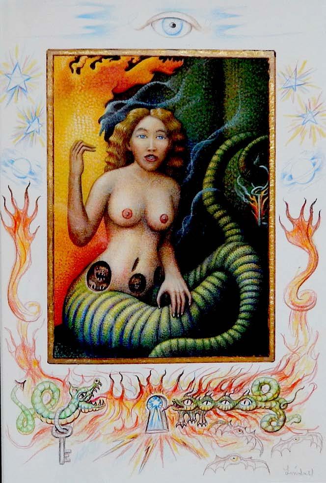Terrance Lindall (is an American artist and the co-director and chief administrator of the Williamsburg Art and Historical Center in Brooklyn, New York. Lindall's illustrations have been published in Heavy Metal, Creepy, Eerie and Vampirella, among others. Lindall's illustrations of John Milton's Paradise Lost have been featured in textbooks and modern printings of Milton's work as well as Lindall's rendition of Paradise Lost in prose. "To get a sense of Lindall’s broader artistic background, you might take a look at his large cover illustration of the comic book “Creepy” (now considered a classic – both the comic book and Lindall’s “creepy” cover illustration of “Visions Of Hell (6/79).” It took Lindall only a few years to illustrate his synopsis of Paradise Lost (published in 1983) and in doing so, to provide readers [with]