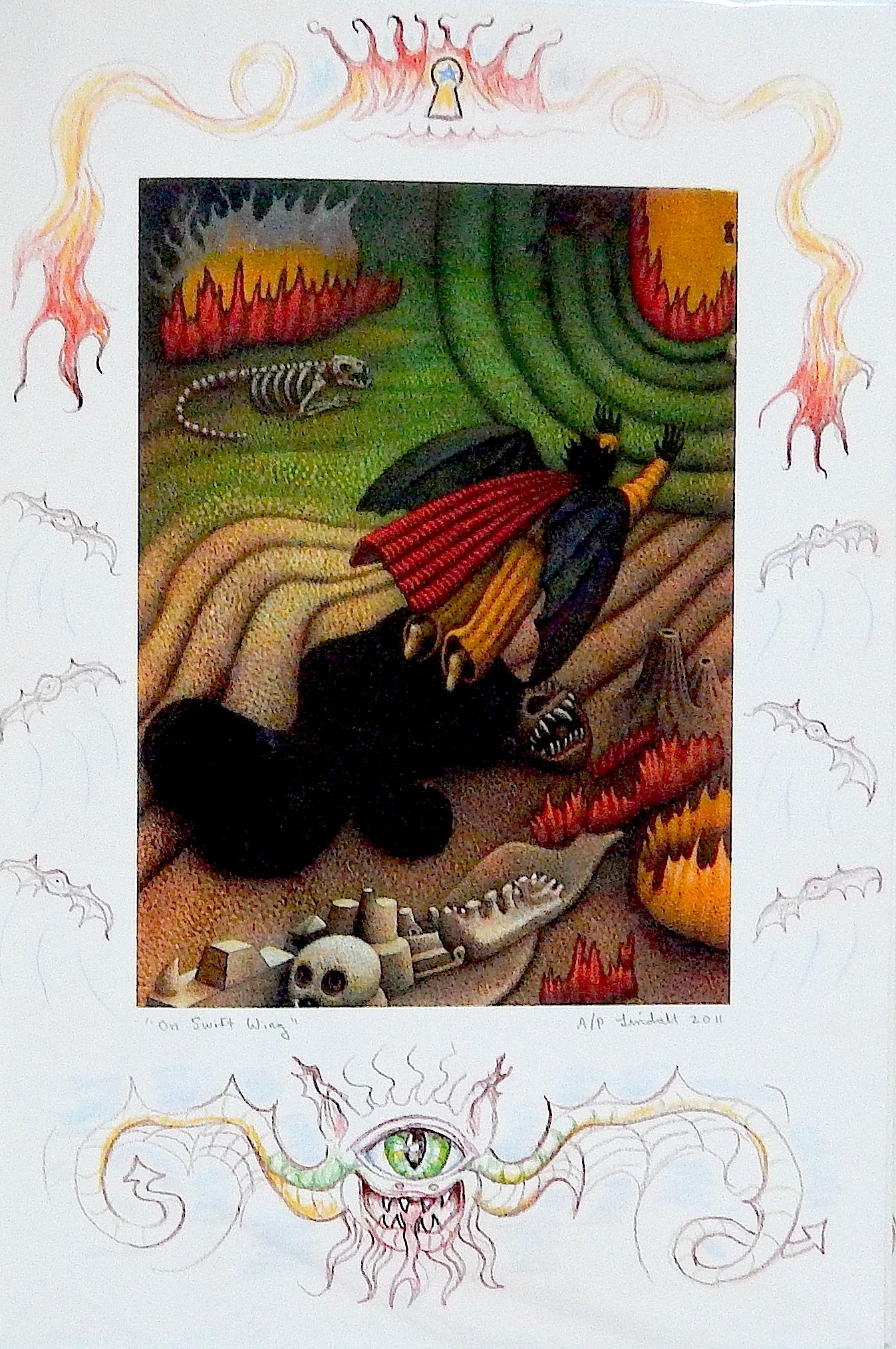 2012-14 Lindall produces two lavish 13 x 19 Gold folios with hand painted borders surrounding Giclee prints. One is acquired by the Robert J. Wickenheiser collection along with a number of original drawings.