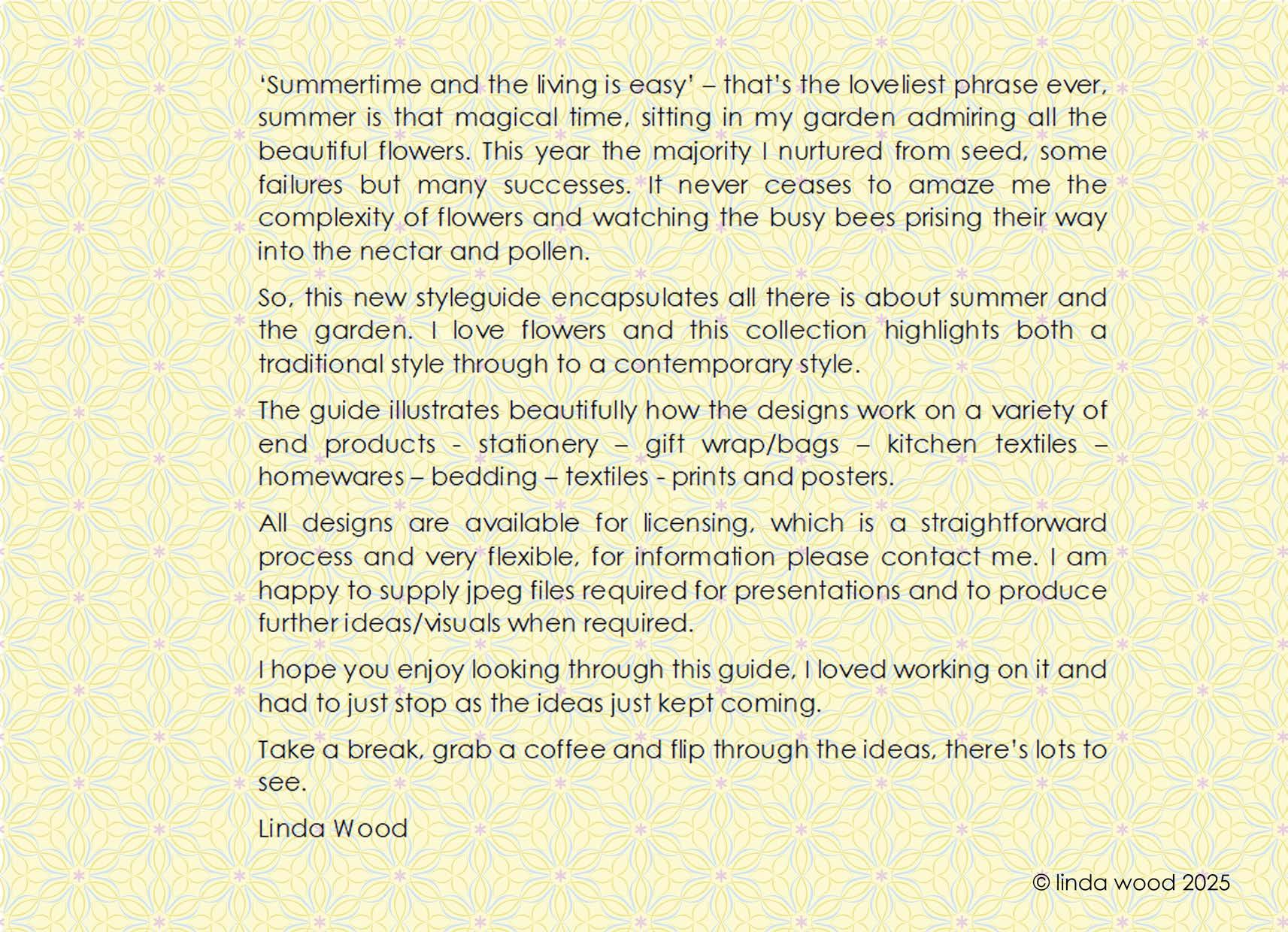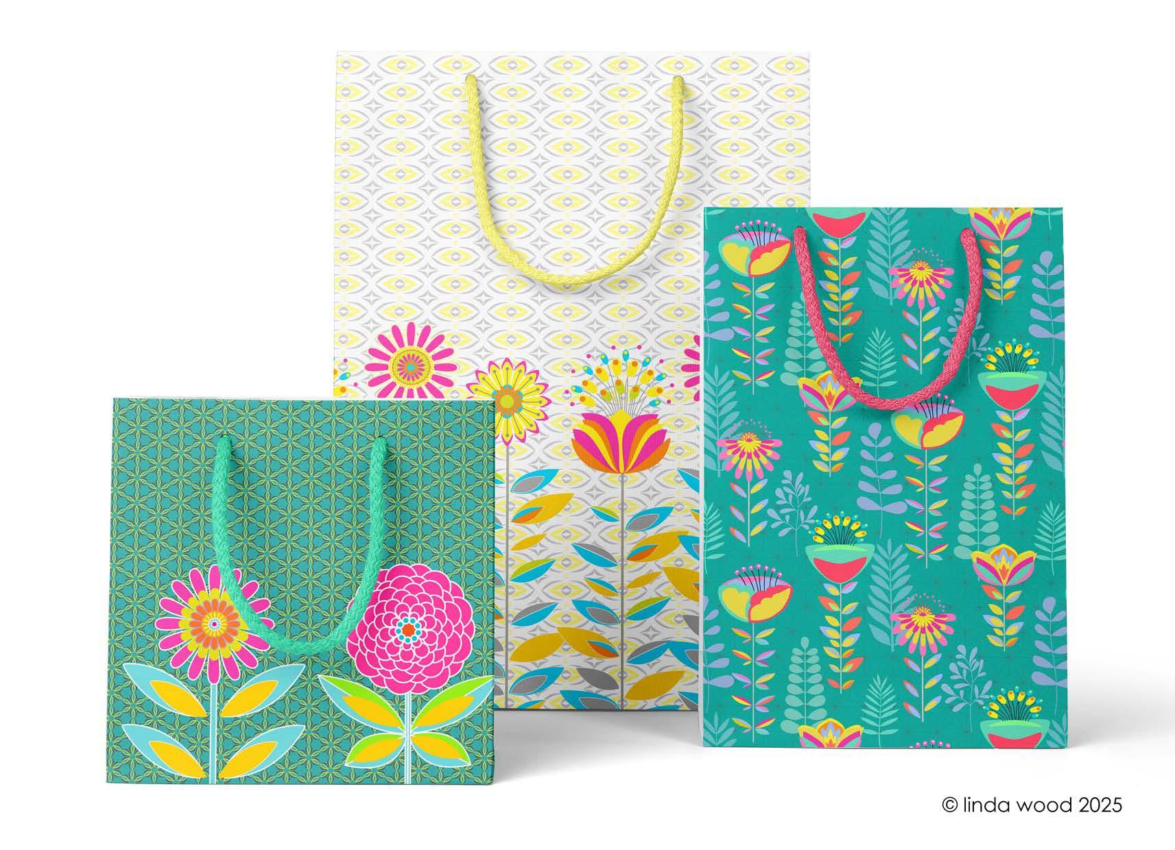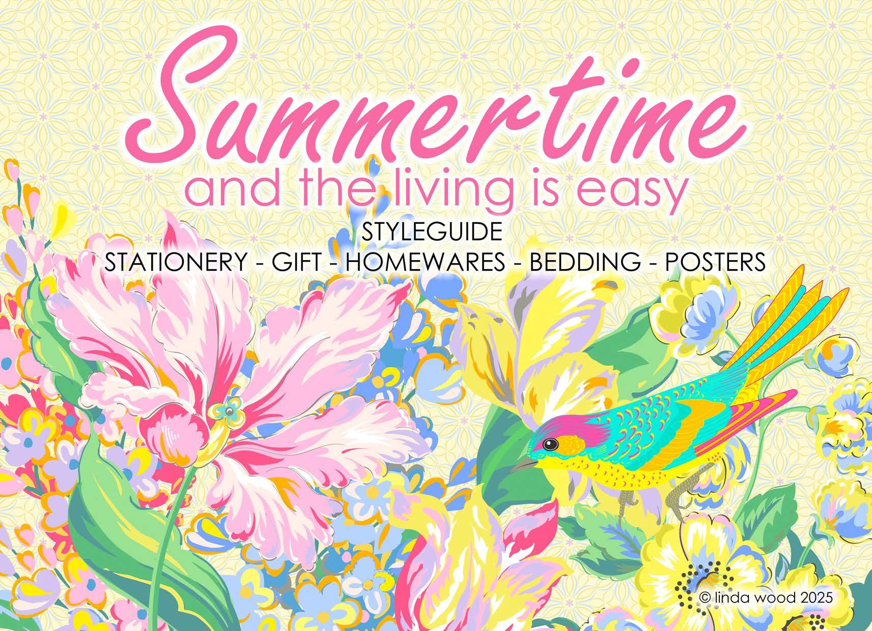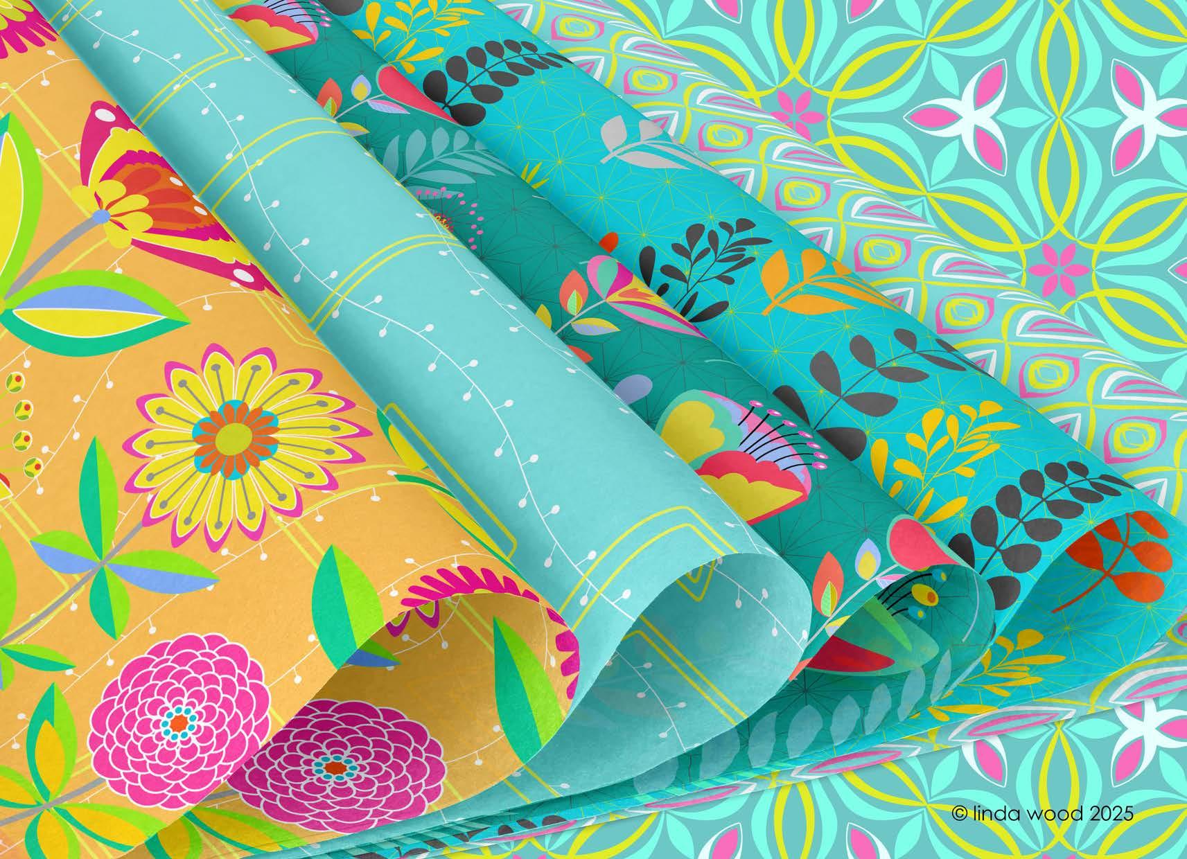 The guide illustrates beautifully how the designs work on a variety of end products - stationery – gift wrap/bags – kitchen textiles – homewares – bedding – textiles - prints and posters.