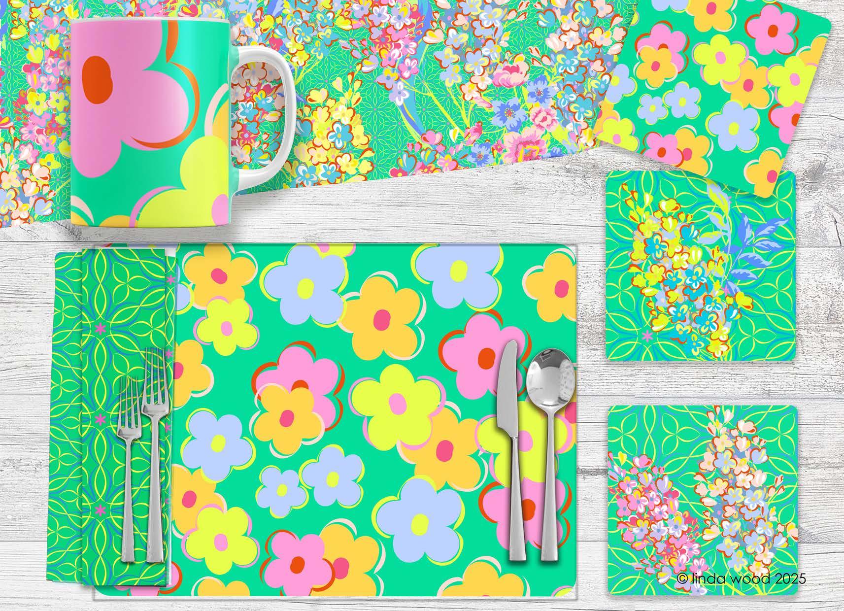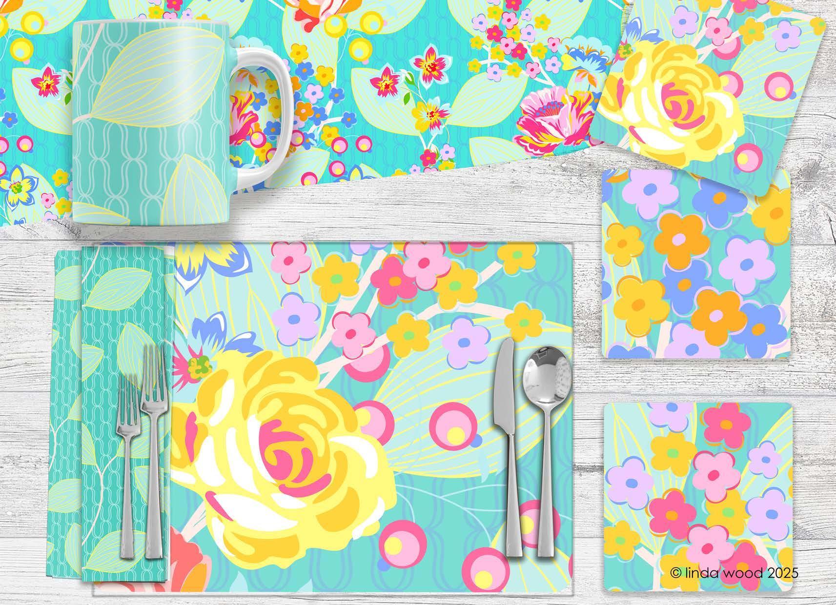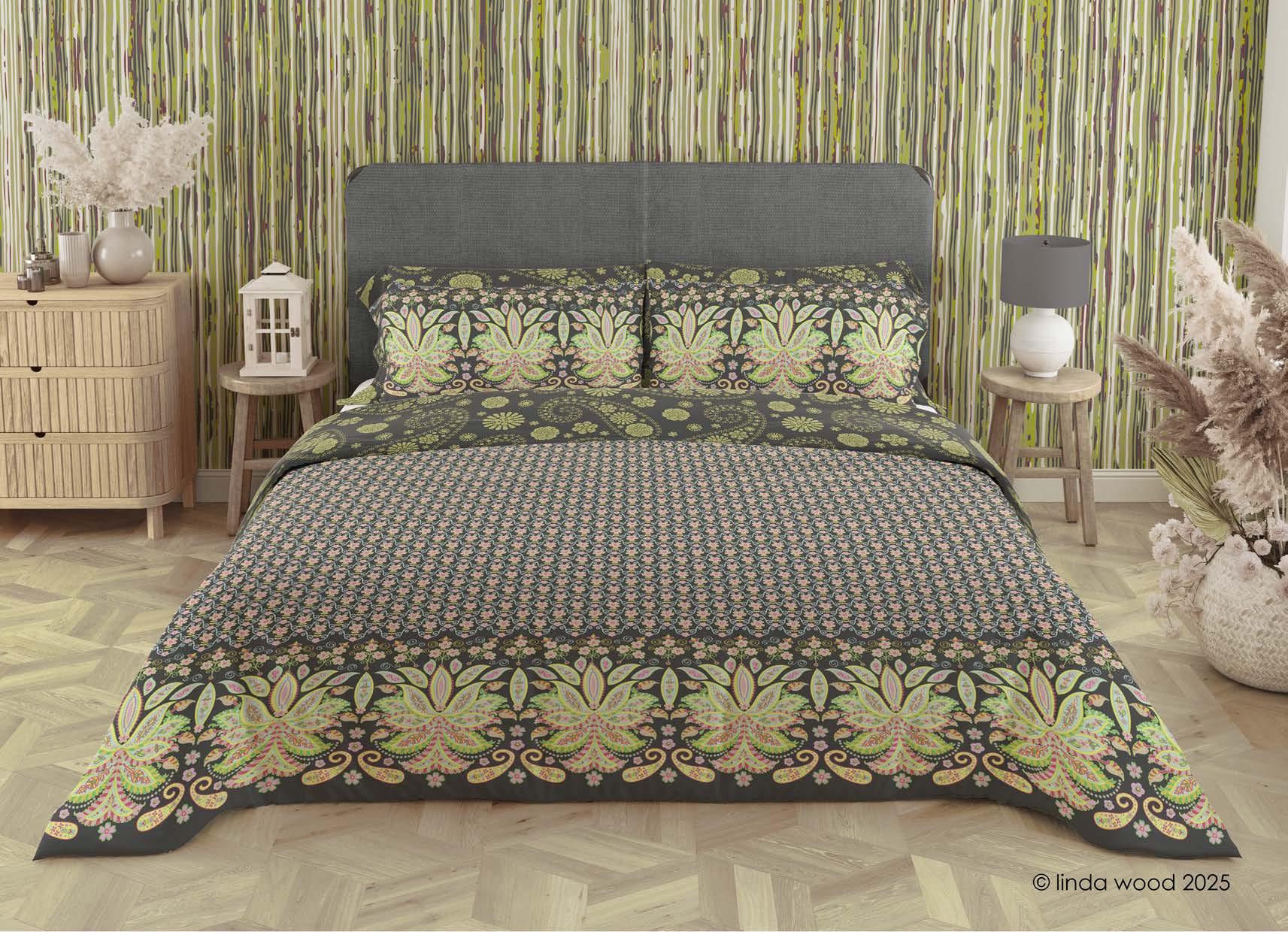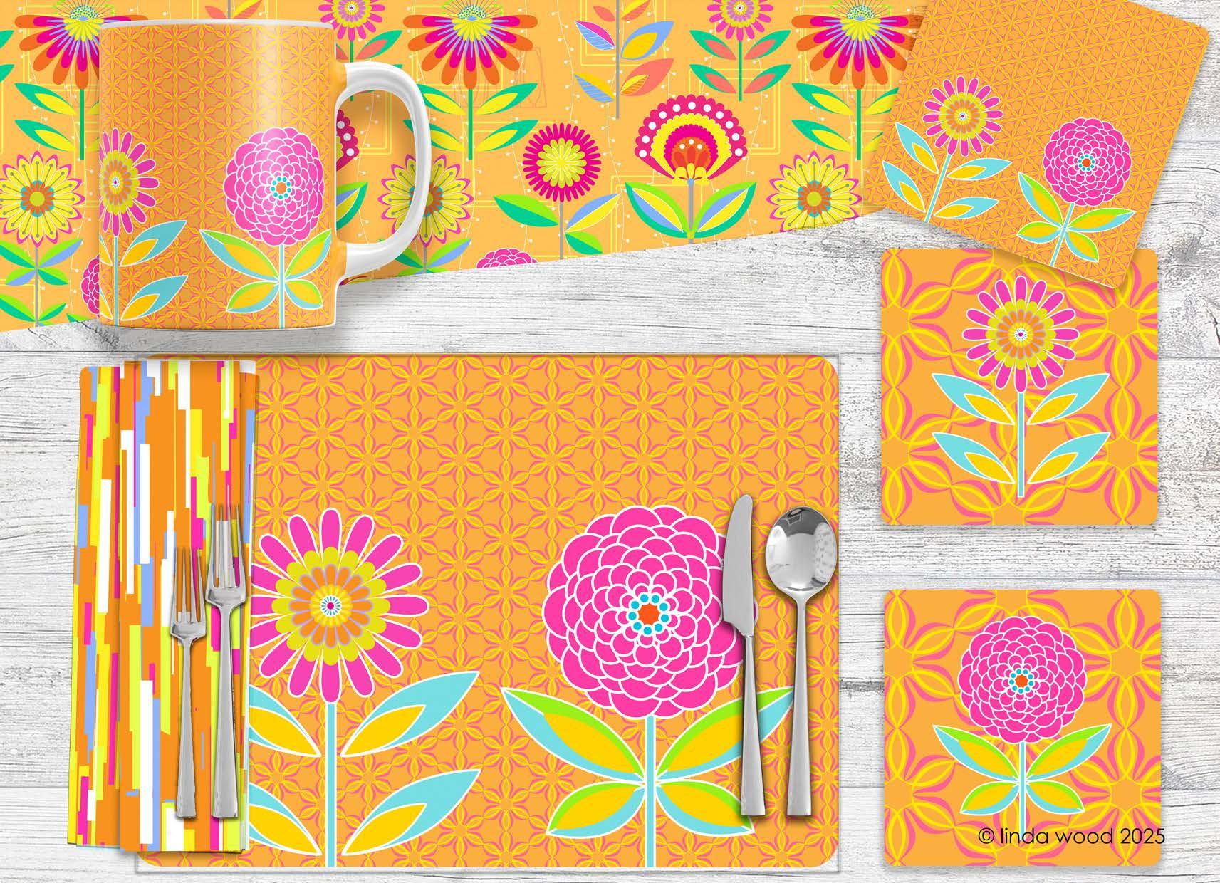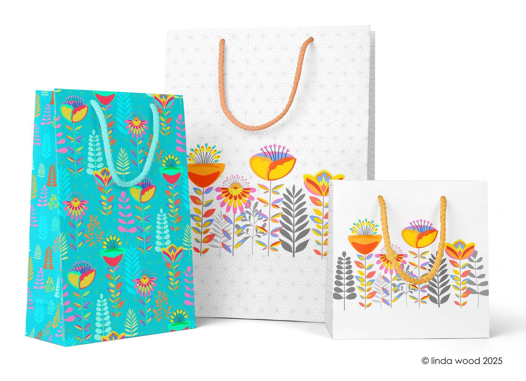 The guide illustrates beautifully how the designs work on a variety of end products - stationery – gift wrap/bags – kitchen textiles – homewares – bedding – textiles - prints and posters.