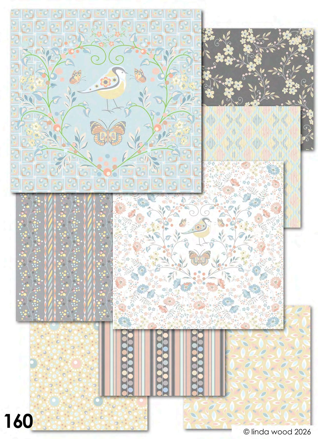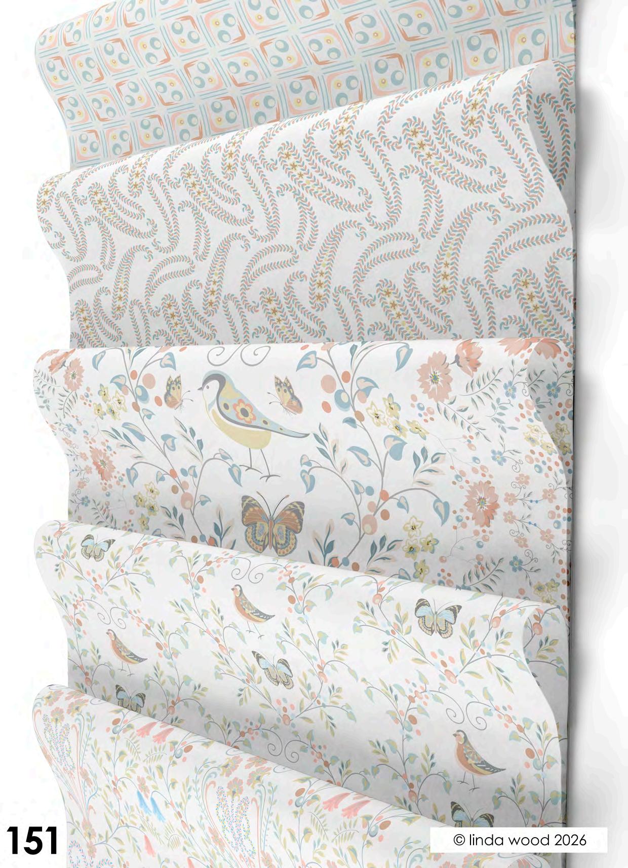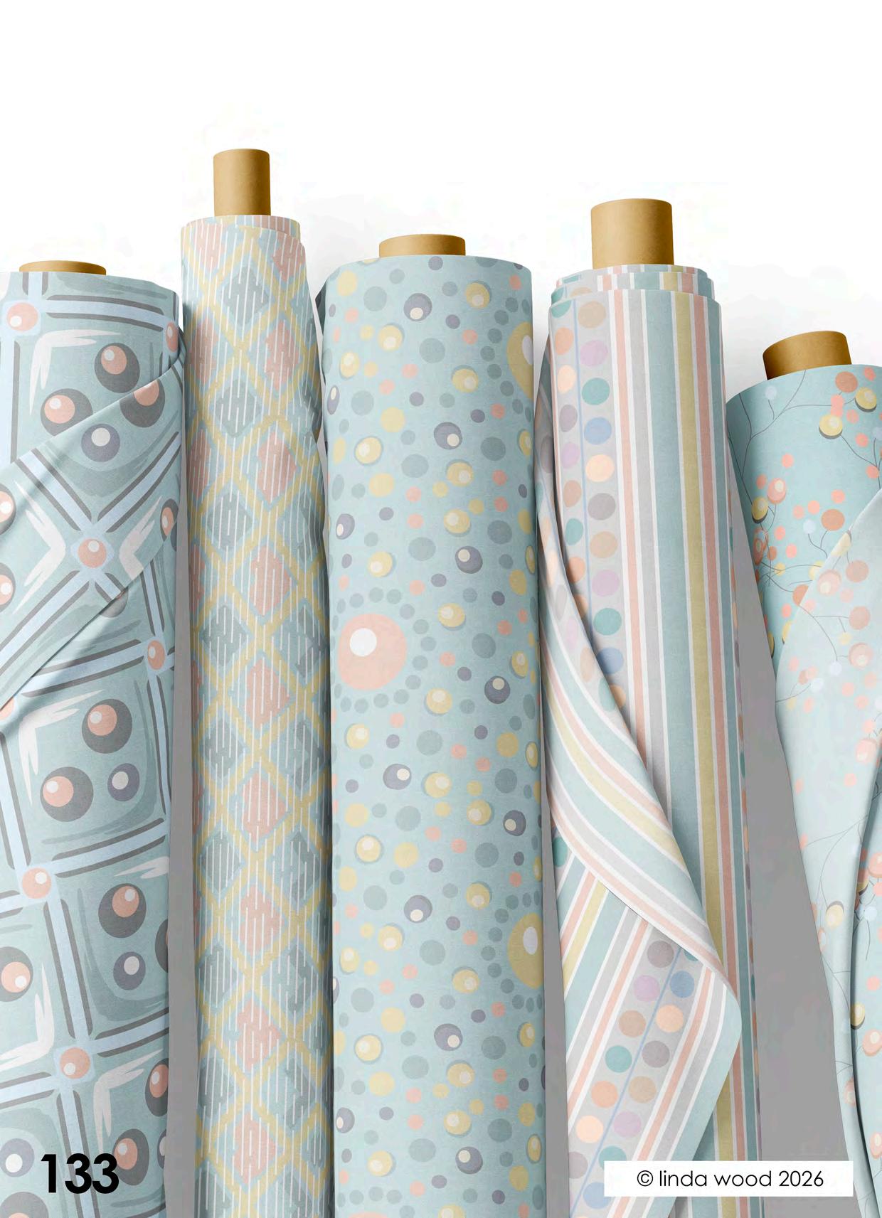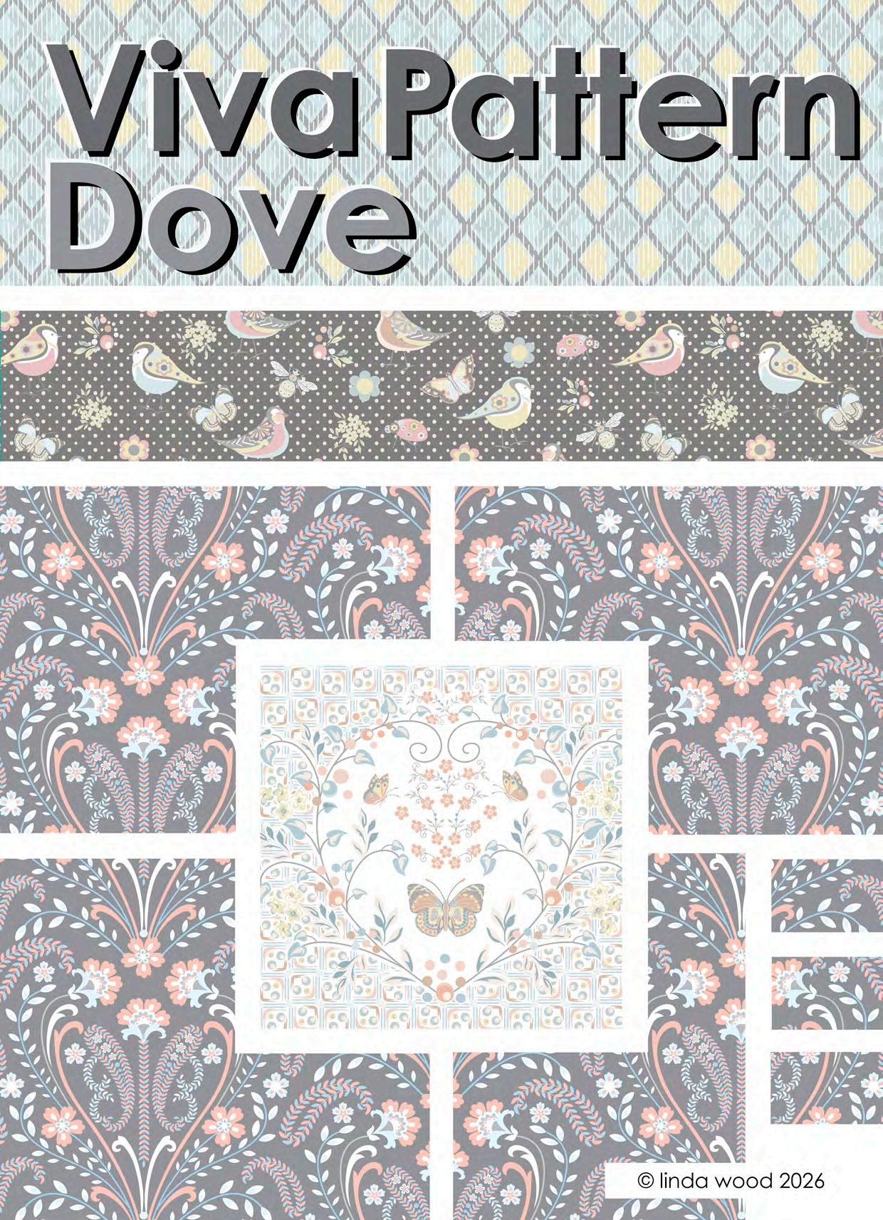 Viva pattern concept is a collection of beautiful designs ranging from contemporary florals interspersed with birds and butterflies. Co-ordinates range from ditsy motifs through to geometrics and stripes. The collections have been split into four quite assorted colour palettes: - magenta – azure and Jade – dove and finally slate. Designs are illustrated on a variety of end products from stationery, gift wrap and bags, fabrics, and homewares. Catalogues end with collections collated into co-ordination boards. © linda wood 2026