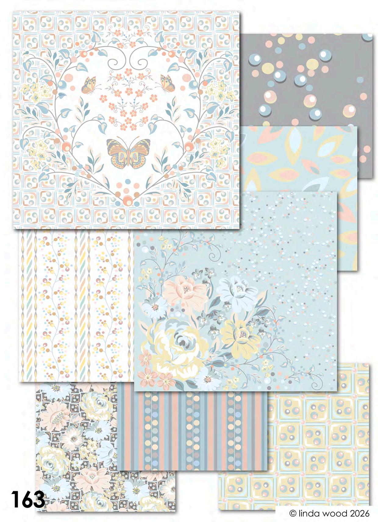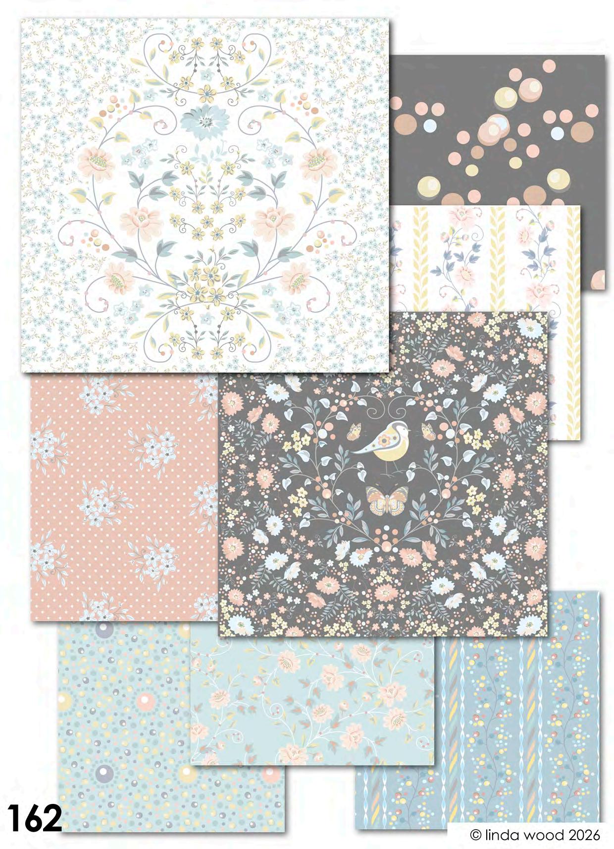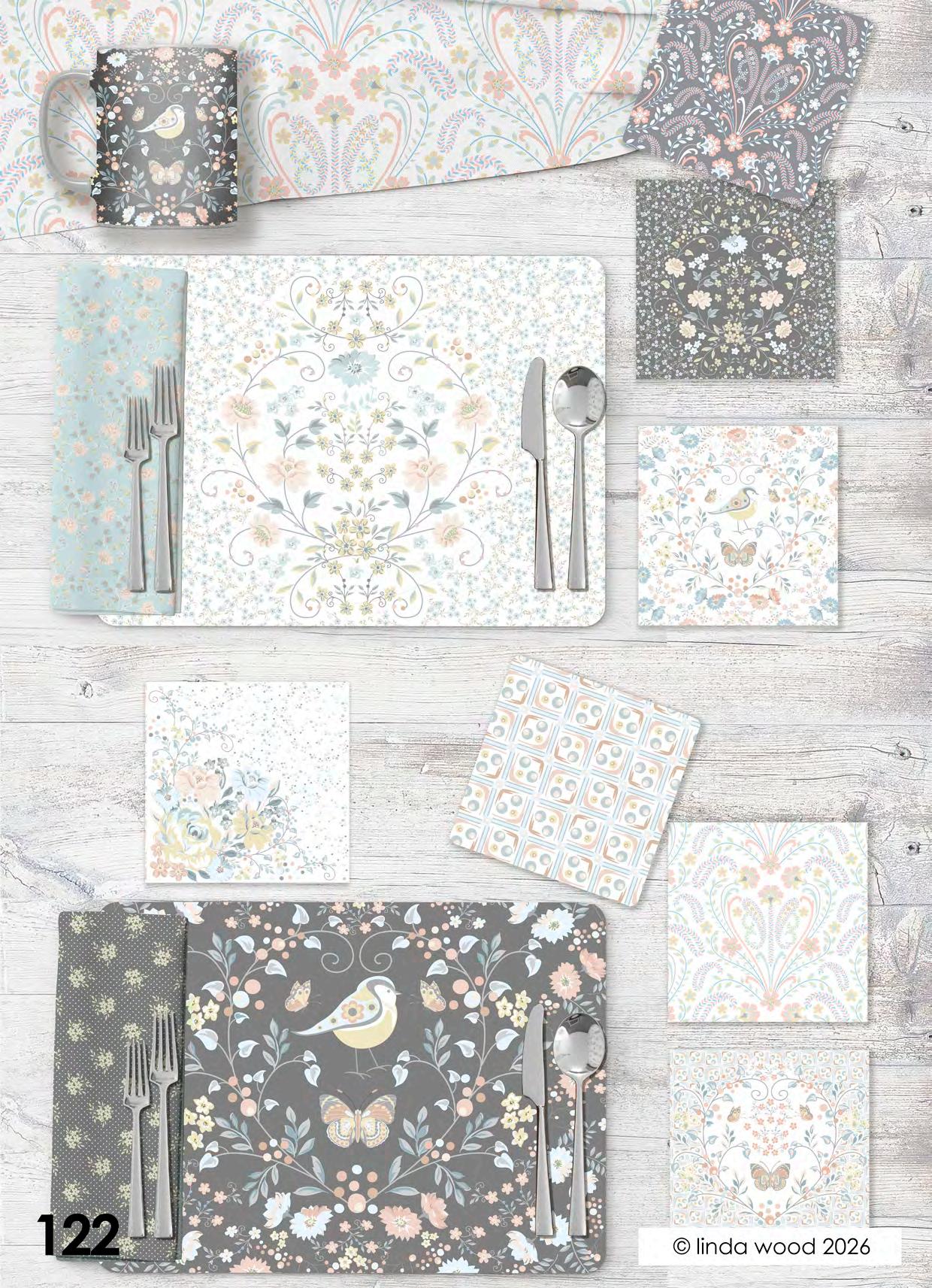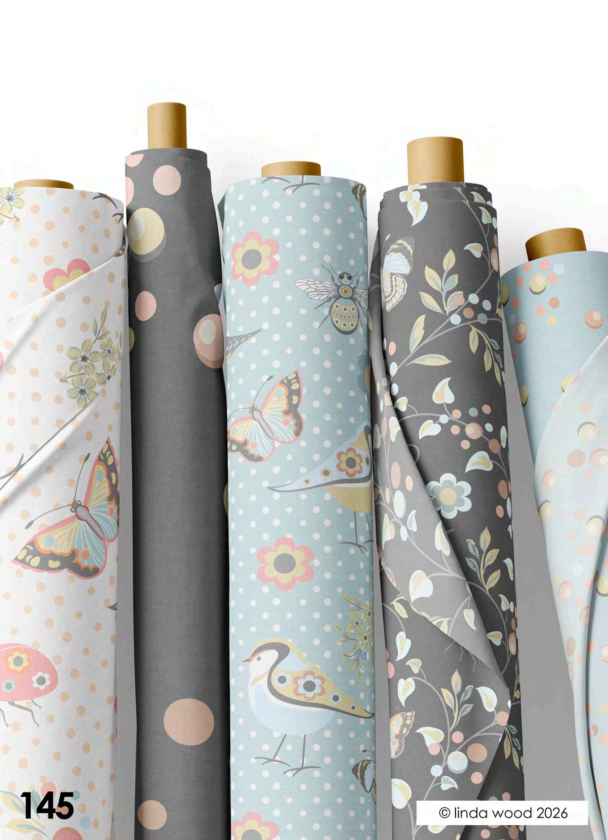 Viva pattern concept is a collection of beautiful designs ranging from contemporary florals interspersed with birds and butterflies. Co-ordinates range from ditsy motifs through to geometrics and stripes. The collections have been split into four quite assorted colour palettes: - magenta – azure and Jade – dove and finally slate. Designs are illustrated on a variety of end products from stationery, gift wrap and bags, fabrics, and homewares. Catalogues end with collections collated into co-ordination boards. © linda wood 2026