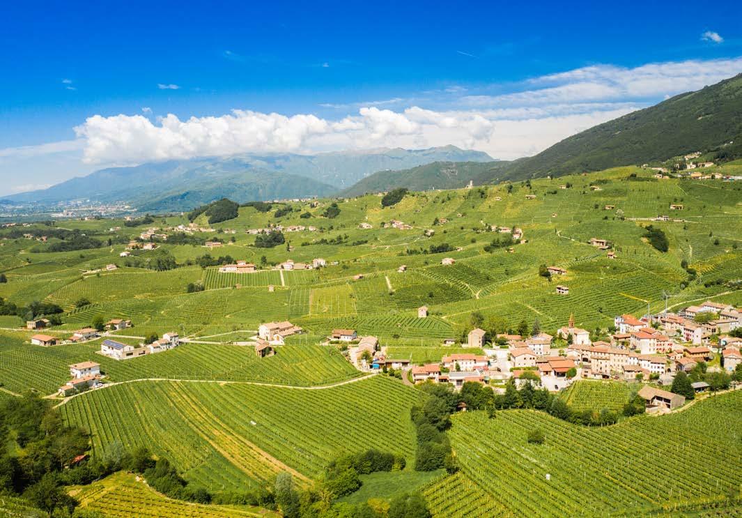 Gracias a un sistema especial de terrazas, a las técnicas de conservación del suelo y del terreno y a las prácticas de viticultura con uva glera, esta zona de colinas del Véneto se ha convertido en una de las zonas vitivinícolas más bellas y productivas del mundo. Cuando llegues aquí, empieza a disfrutar de las vistas, extendiendo tu mirada sobre los viñedos hasta los pequeños bosques, las hileras de árboles y los setos circundantes.