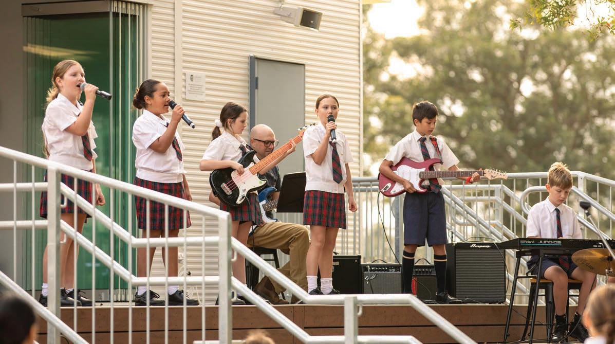 Pictured: Students peforming on the new outdoor performance deck, part of the Junior School Performing Arts Centre.