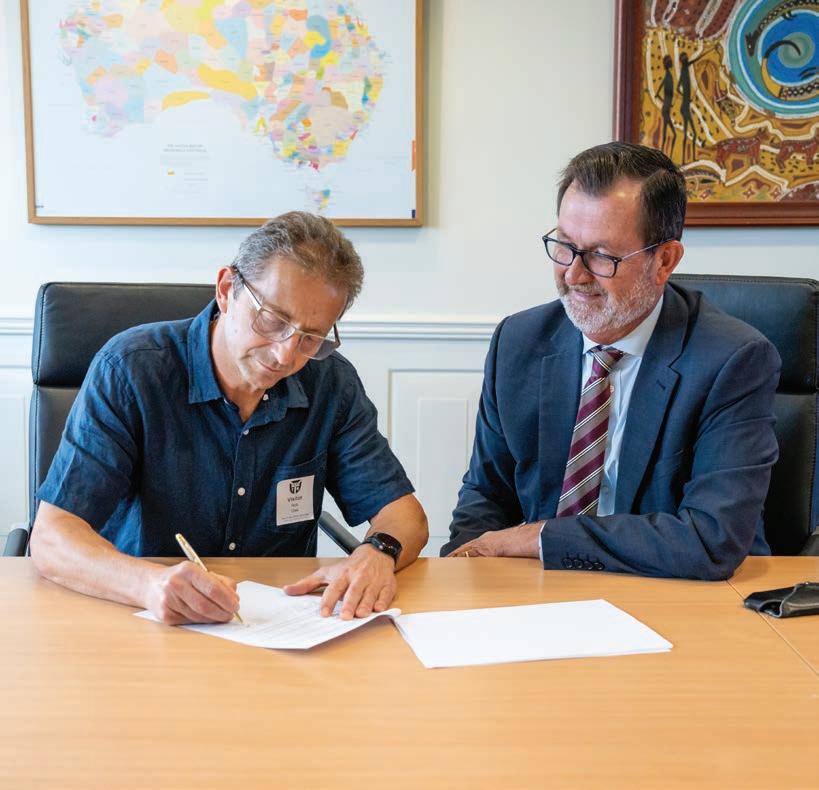 Pictured: Principal Stuart Marquardt and Murwillumbah Rowing Club President Dr Robert Gee formalising the rowing partnership agreement.