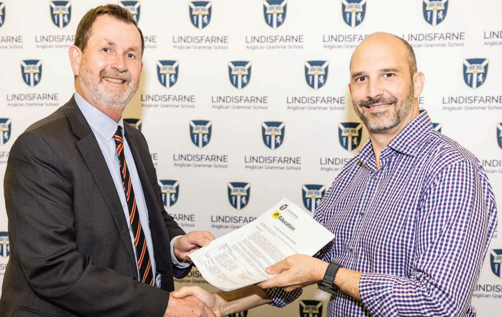 Pictured: Principal Stuart Marquardt and JB Hi-Fi National Sales Program and State Manger Mr Jorge De Abreu, confirming Lindisfarne’s new multi year partnership.